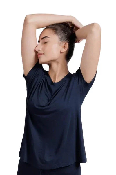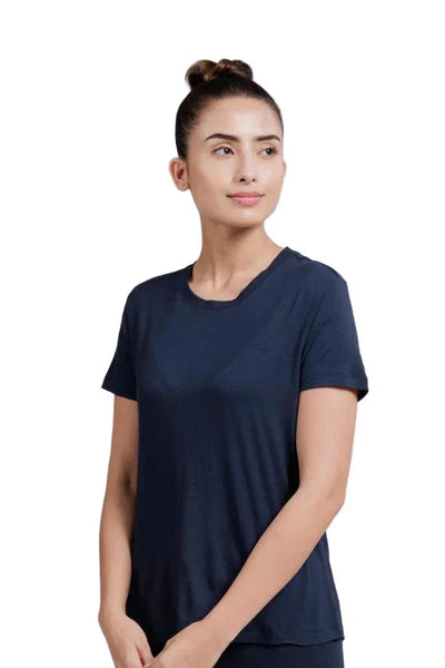 Colour: Midnight NavyMaterial: Bamboo Fabric (160 GSM)Occasion: Loungewear, Sleepwear, Home WearPattern: SolidNeckline: Crew NeckFit: Relaxed FitSleeve Type: Short SleevesCare Instructions: Machine wash cold; gentle cycle; do not bleachPack Contains: 1 Lounge TeeCountry Of Origin: India