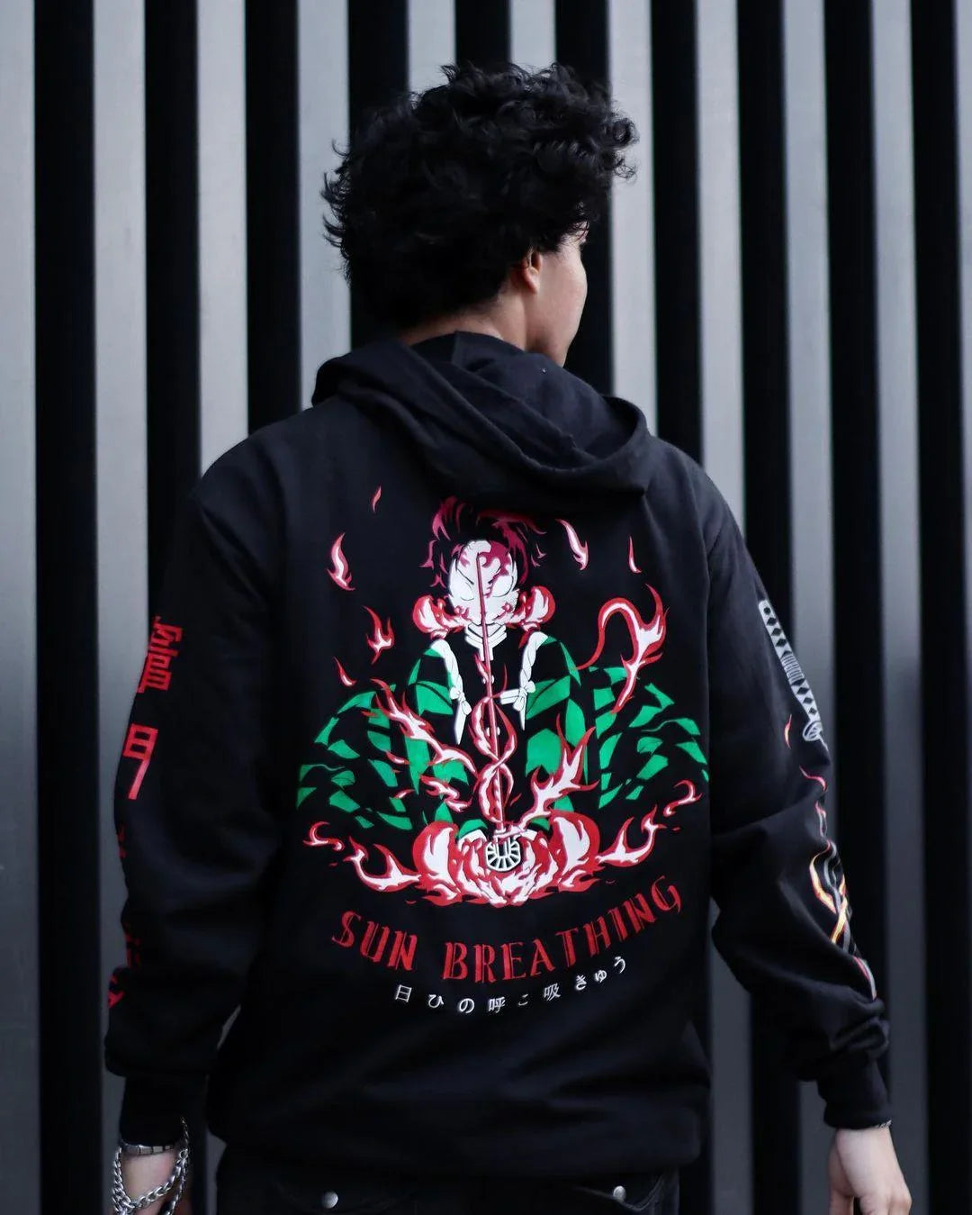 Colour: BlackMaterial: 340 GSM Terry CottonOccasion: Casual, Streetwear, Anime WearPattern: Anime Graphic Print (Front, Sleeves, Back)Neckline: Hooded NeckFit: Regular FitSleeve Type: Full SleevesCare Instructions: Hand & Machine Wash; Do Not Iron on PrintPack Contains: 1 HoodieCountry Of Origin: India
