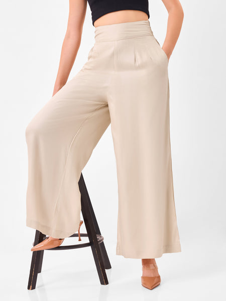 Latte Flow High Waist Wide Leg Beige Pants