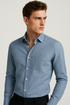 Tailored in a flattering slim fit and finished with a spread collar, chest pocket, and clean curved hem, it strikes the right balance between laid-back ease and modern sophistication. The serene Pacific Blue hue adds a coastal charm that pairs effortlessly with neutrals, denims, or tailored trousers.