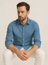 The long-sleeve soft Azure Blue shirt is designed from a lightweight, breathable linen fabric enzyme washed for extra softness — perfect for any semi-formal occasion.
