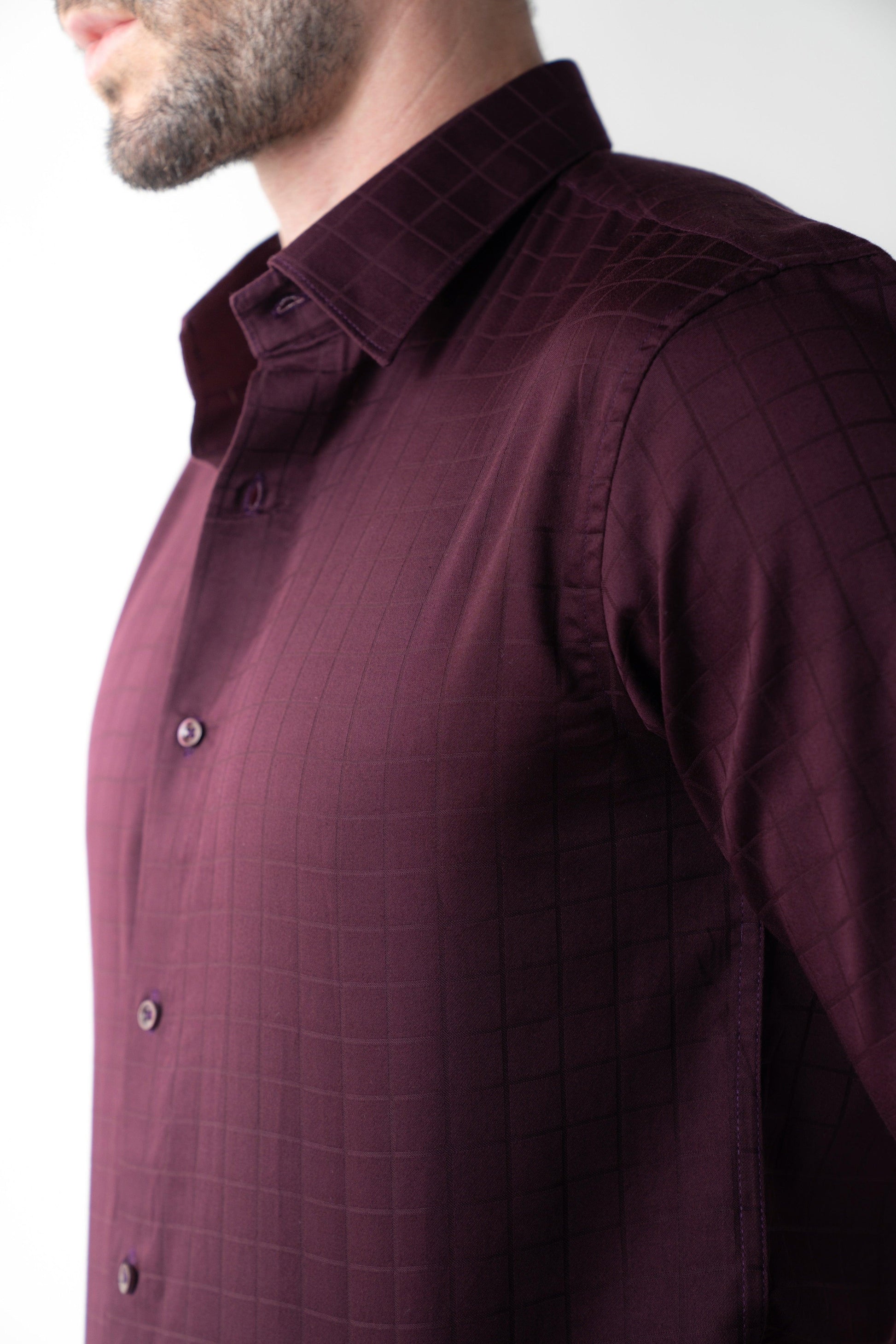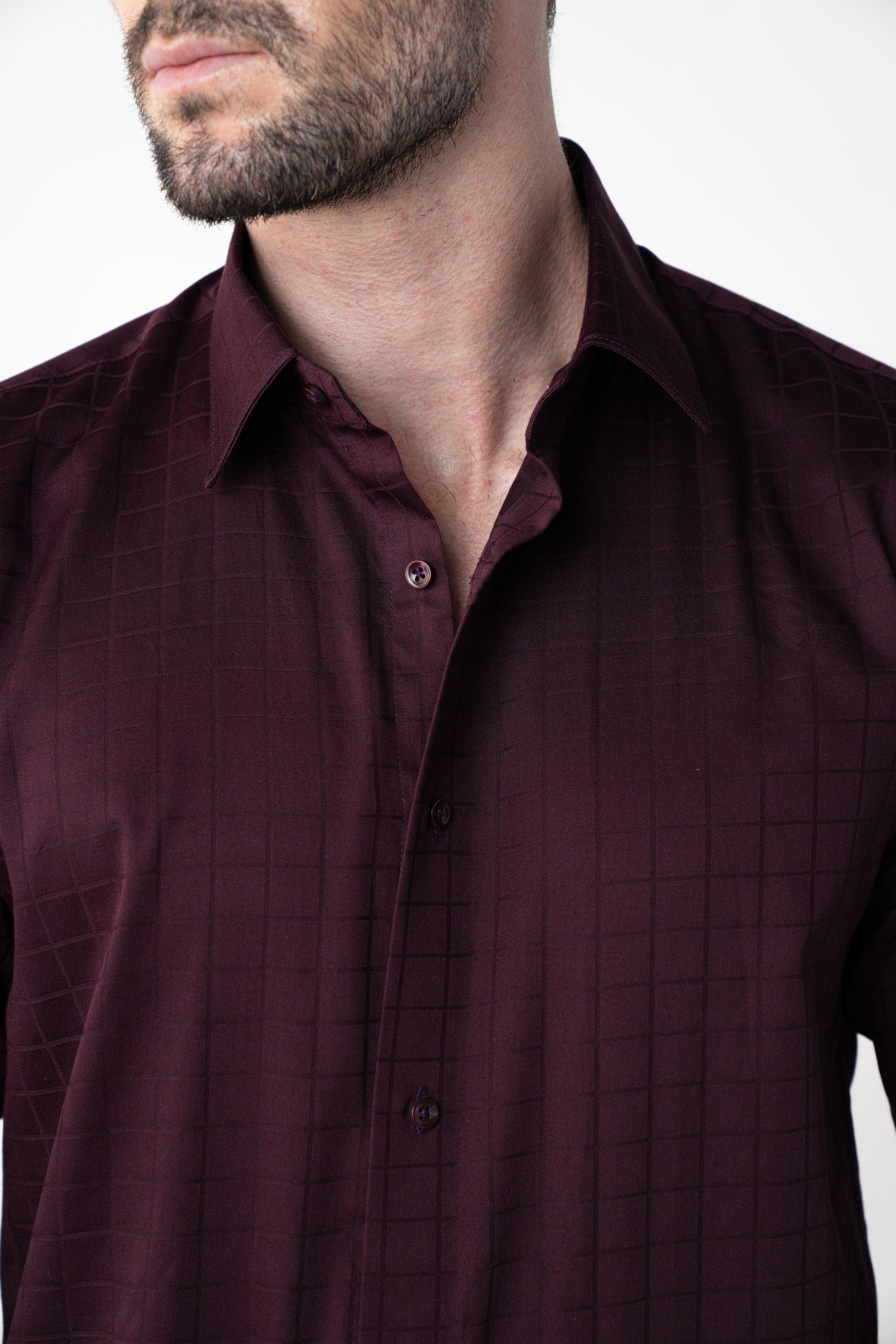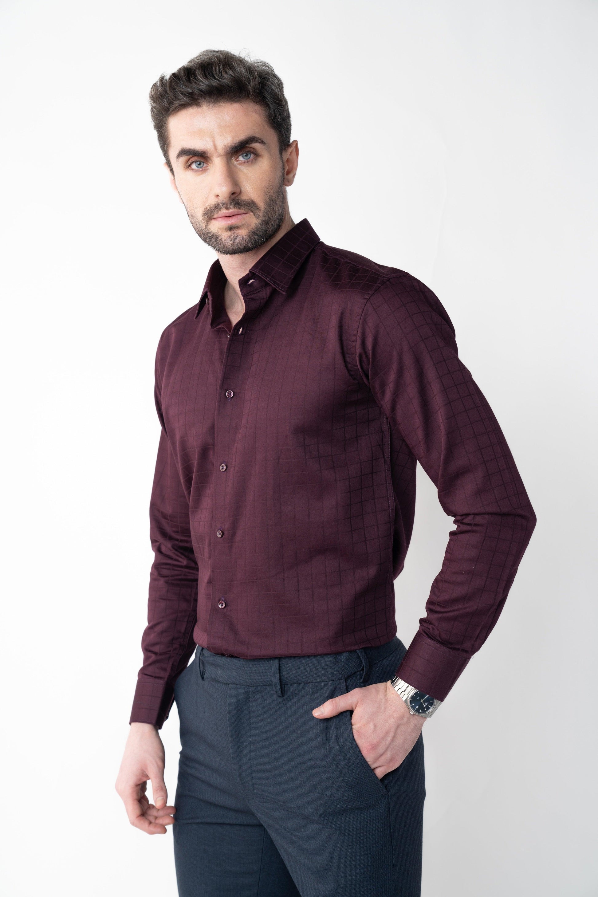 Fashioned from the finest Giza cotton satin, the Dark Wine Checkmate shirt is a cornerstone of any formal ensemble with its distinctive check pattern. Featuring a comfortable regular fit, it’s ideal for standalone wear or as a complement to a sophisticated suit, adding a touch of refinement to your look.