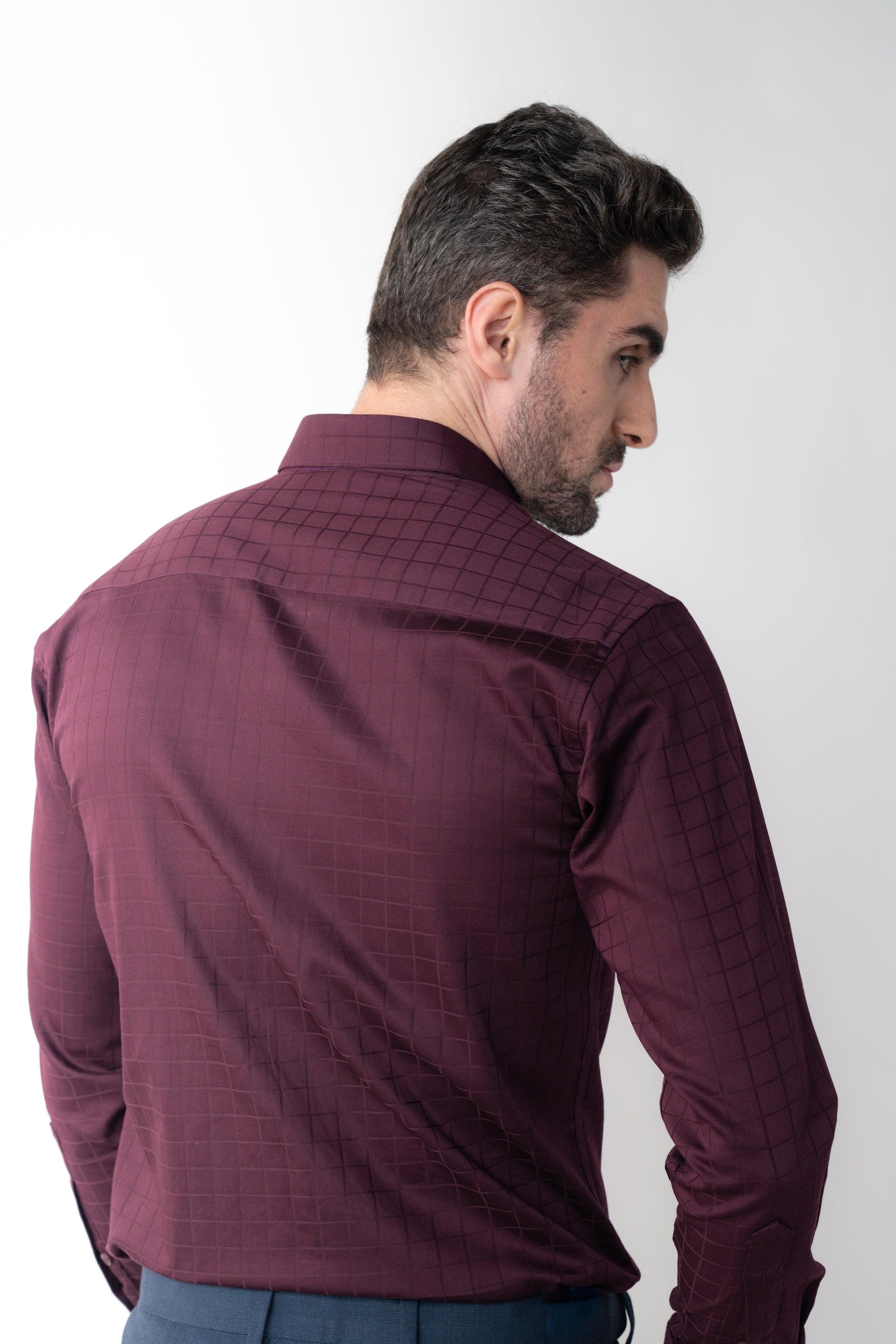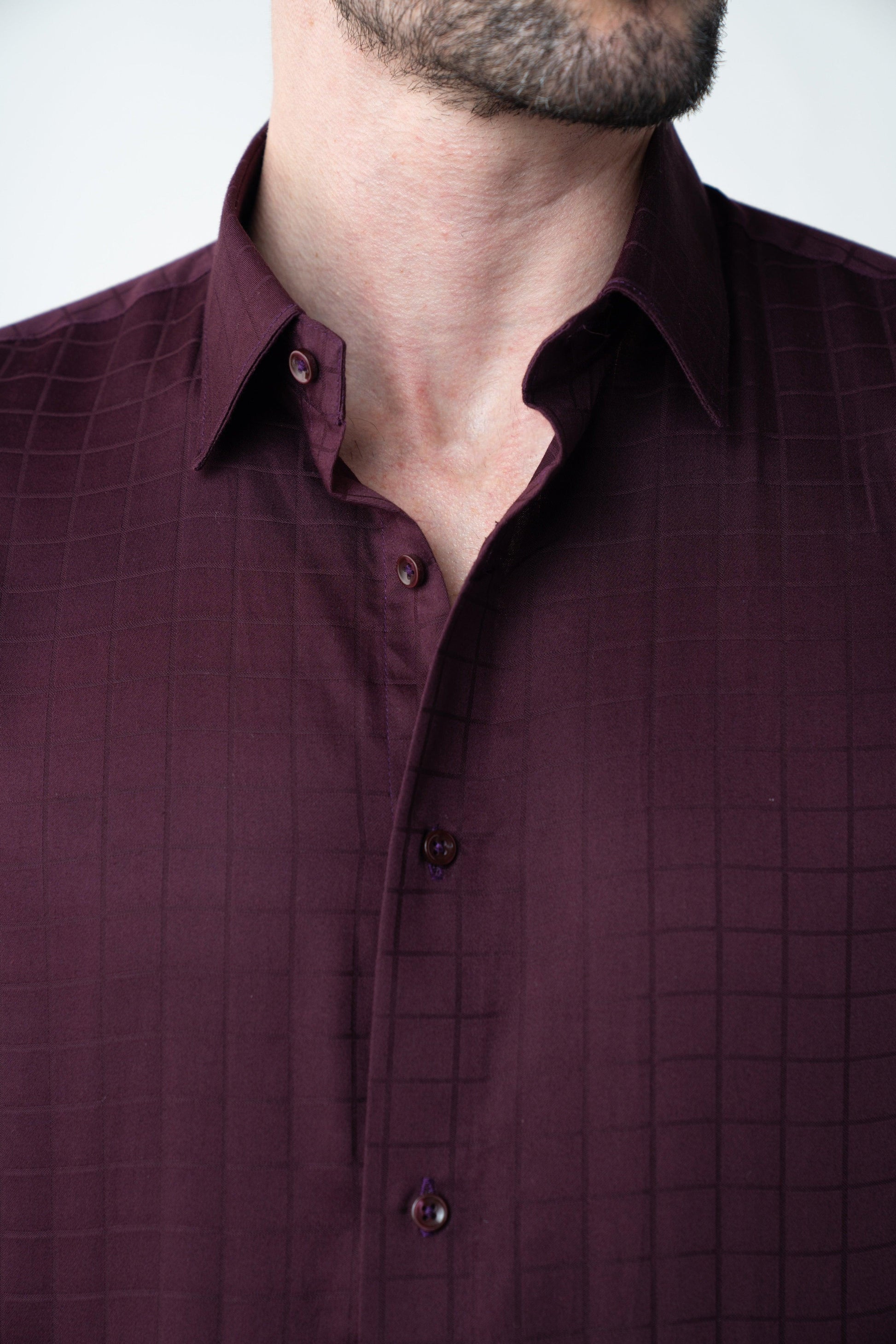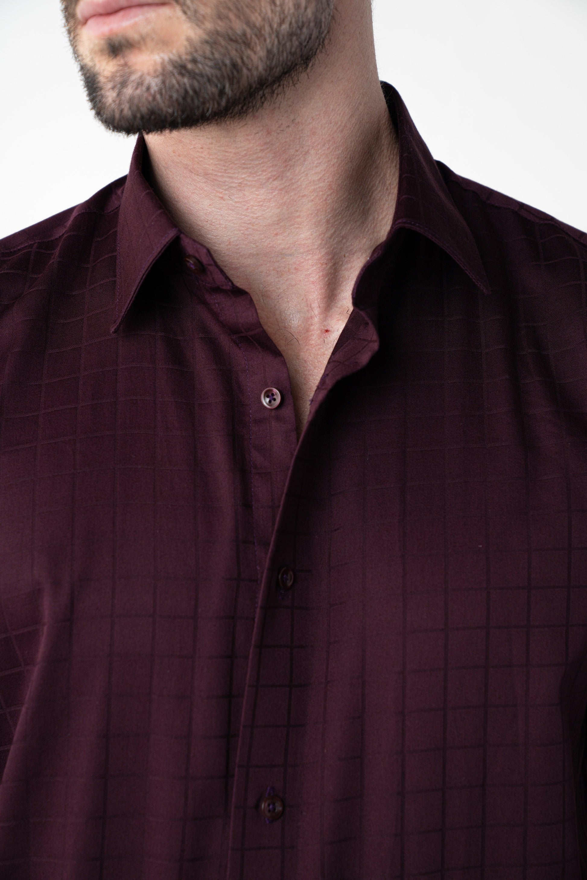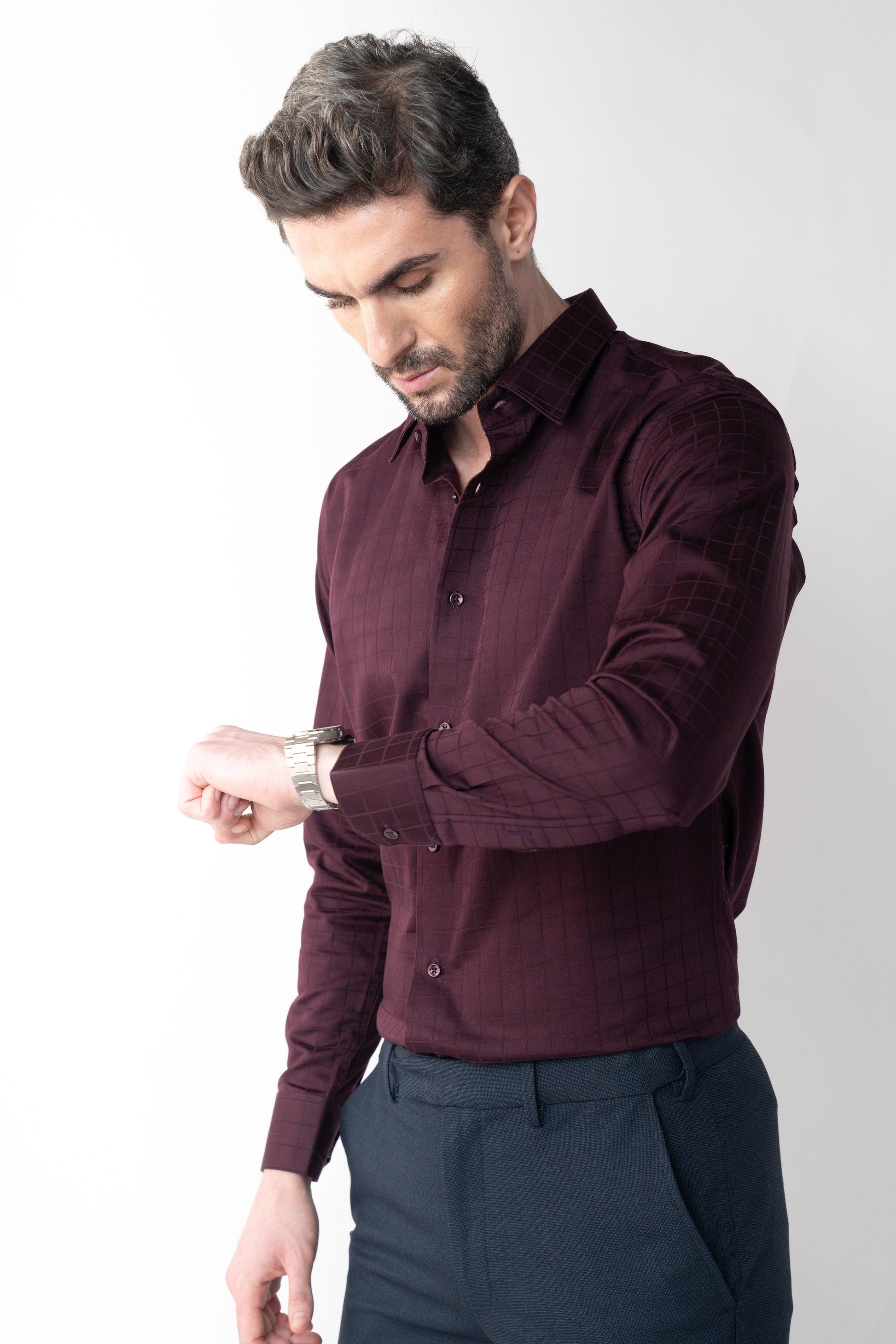 Fashioned from the finest Giza cotton satin, the Dark Wine Checkmate shirt is a cornerstone of any formal ensemble with its distinctive check pattern. Featuring a comfortable regular fit, it’s ideal for standalone wear or as a complement to a sophisticated suit, adding a touch of refinement to your look.