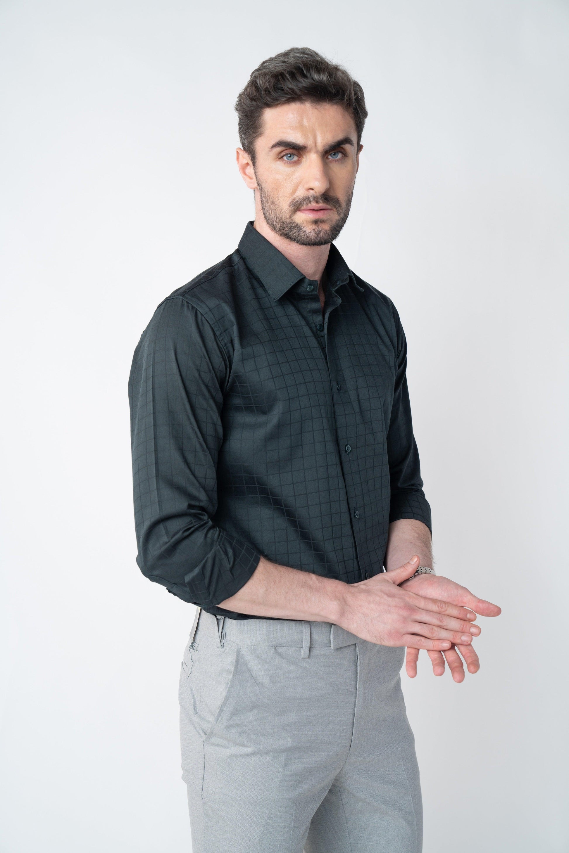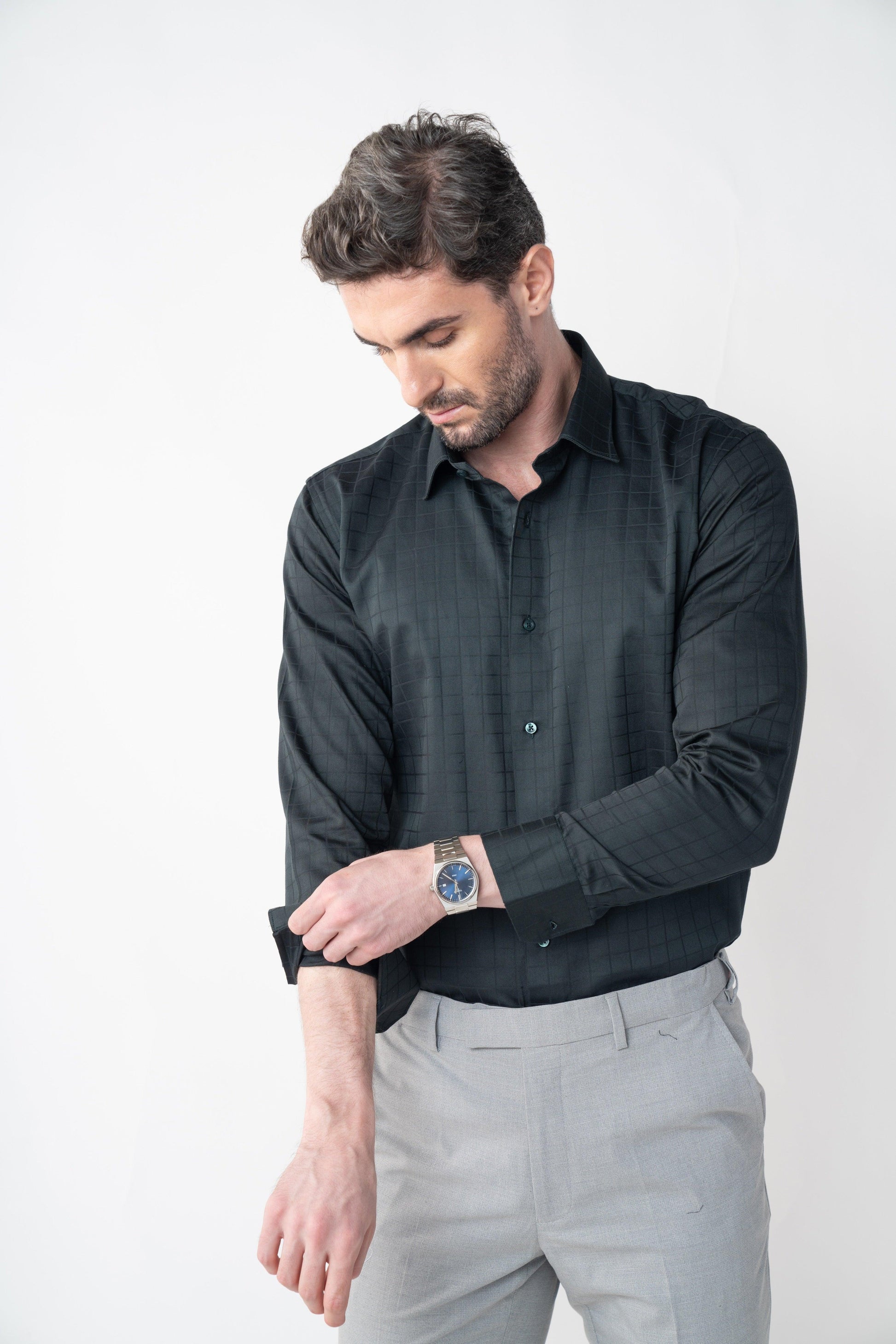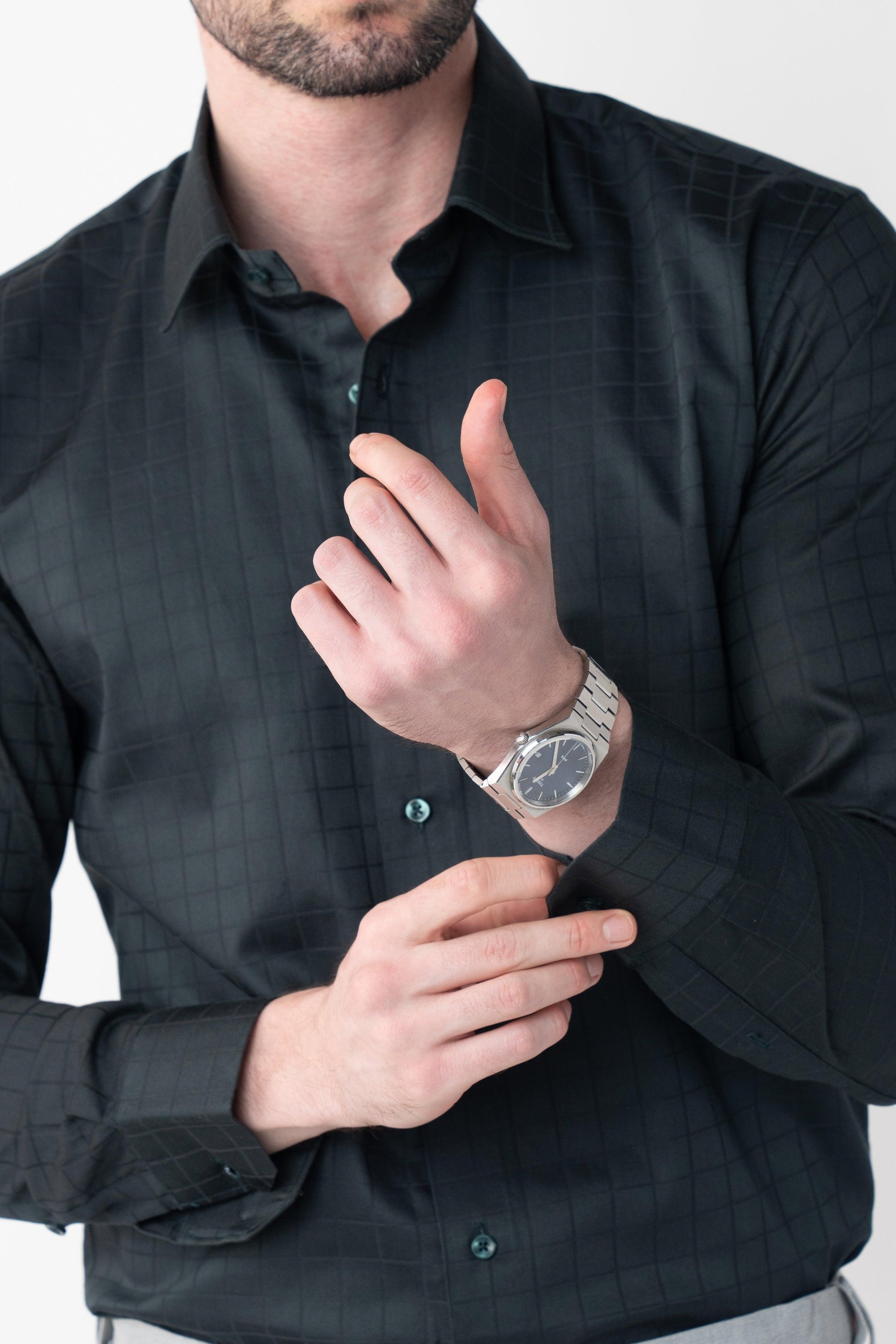 Fashioned from the finest Giza cotton satin, the Rainforest Olive Checkmate shirt is a cornerstone of any formal ensemble with its distinctive check pattern. Featuring a comfortable regular fit, it’s ideal for standalone wear or as a complement to a sophisticated suit, adding a touch of refinement to your look.