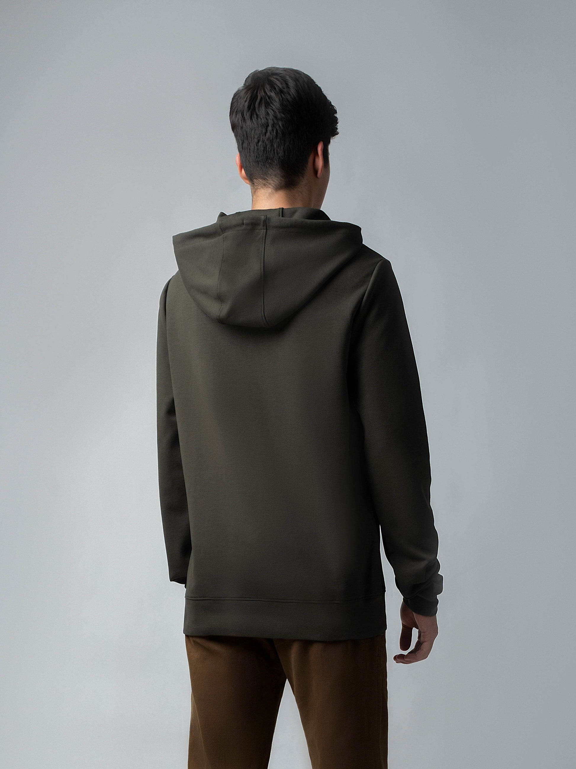 Engyne Essential Hooded Sweatshirt with Contrast HD Print in Rougen Cotton Poly Elastane Interlock Olive
