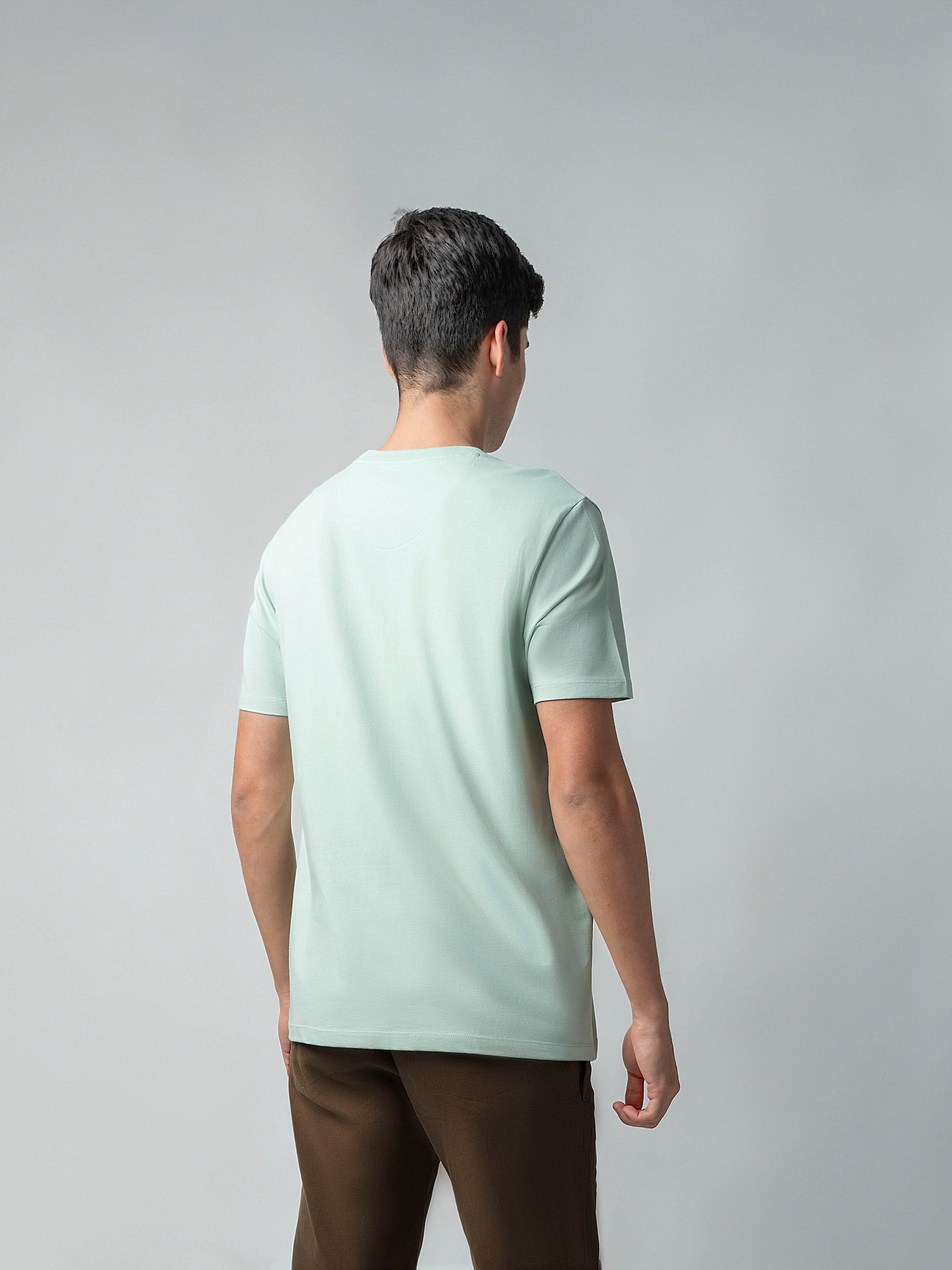 Rougen Cotton Lycra with Sublimation Print and Embroidered Badge Light Green T-shirt