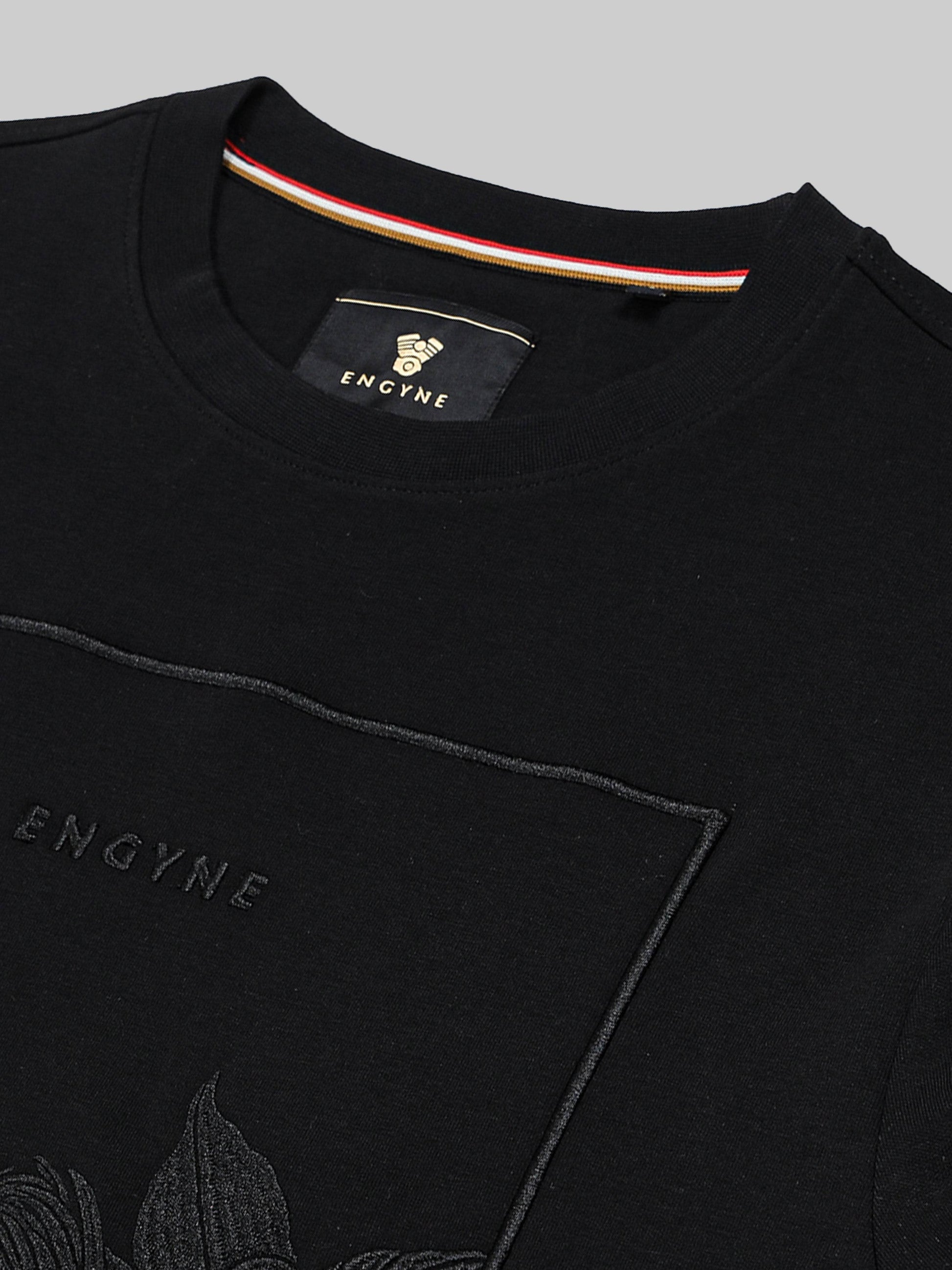 Crew Neck Sweatshirt with DTM Floral Chest Embroidery Black