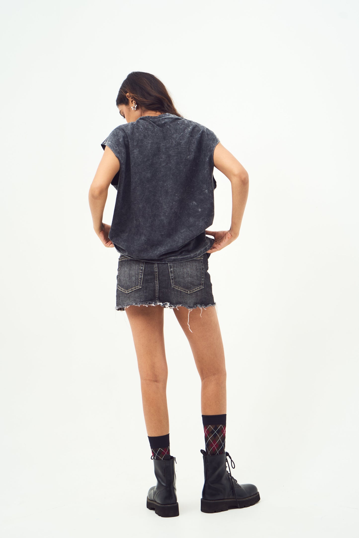The fabric of this red graphic sleeveless t-shirt feels soft against the skin. The raw armhole cuts keep it cool and edgy. The gothic-style print stands out, making this piece ideal for those who like to express themselves through fashion. The acid wash creates a vintage vibe that pairs well with both casual and streetwear looks.