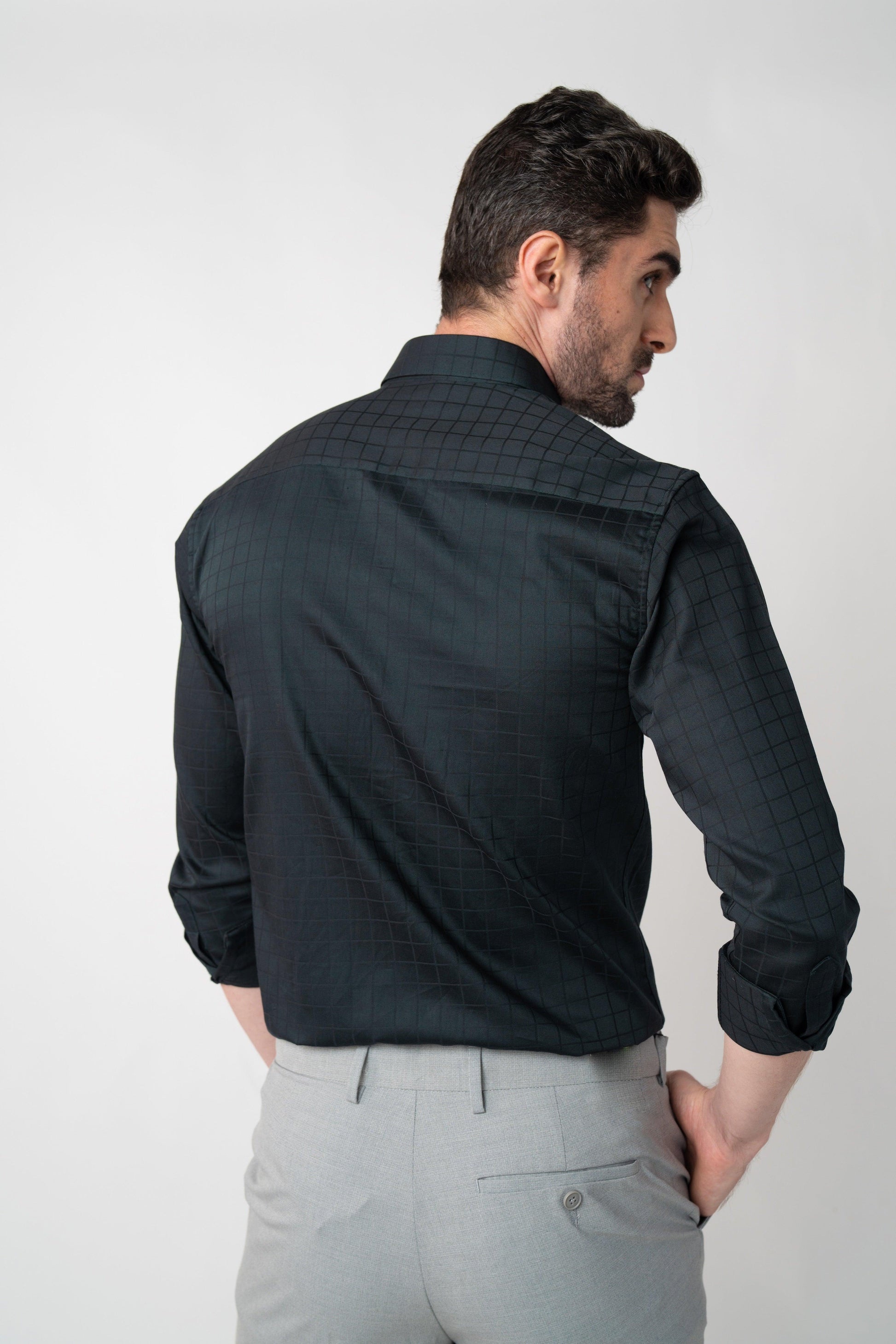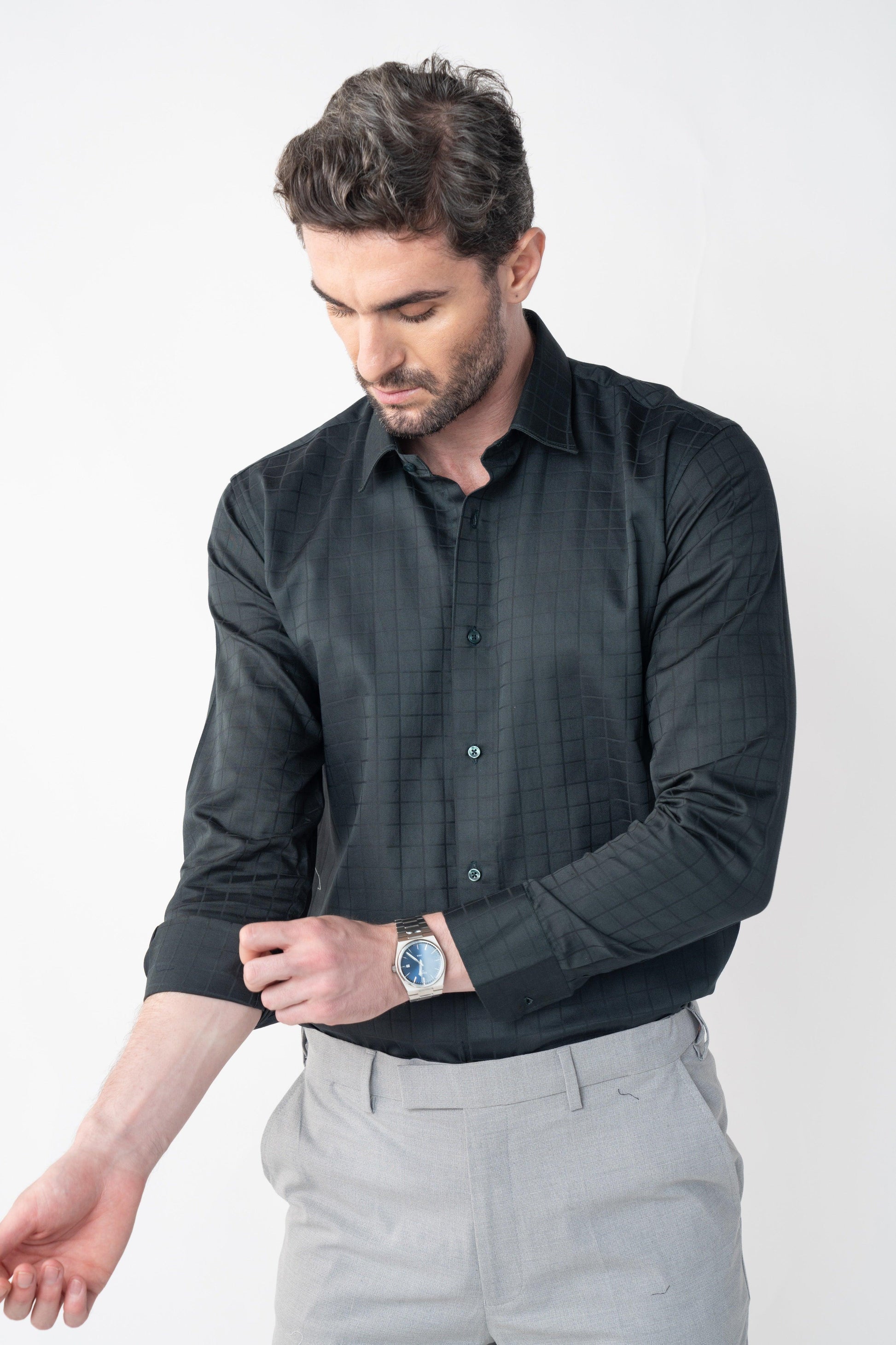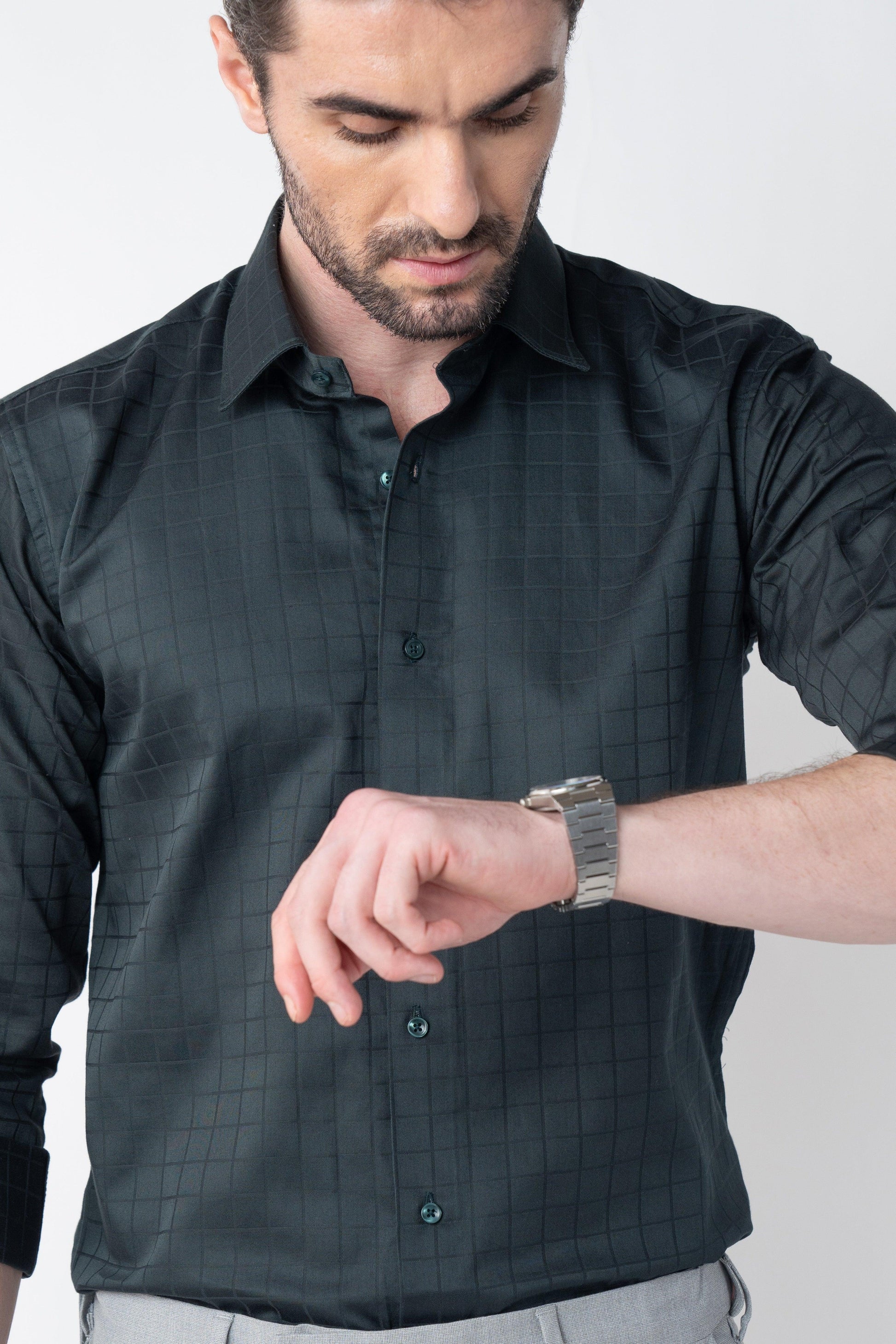 Fashioned from the finest Giza cotton satin, the Rainforest Olive Checkmate shirt is a cornerstone of any formal ensemble with its distinctive check pattern. Featuring a comfortable regular fit, it’s ideal for standalone wear or as a complement to a sophisticated suit, adding a touch of refinement to your look.