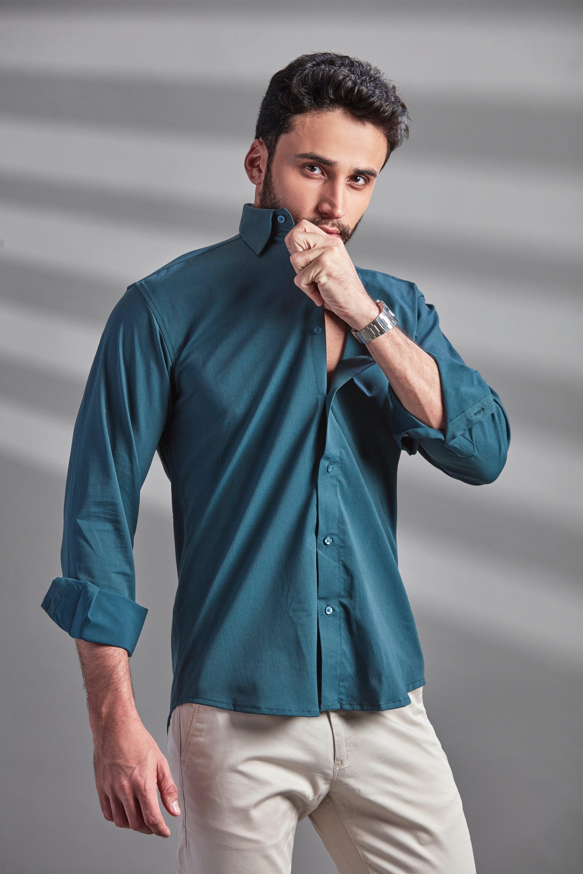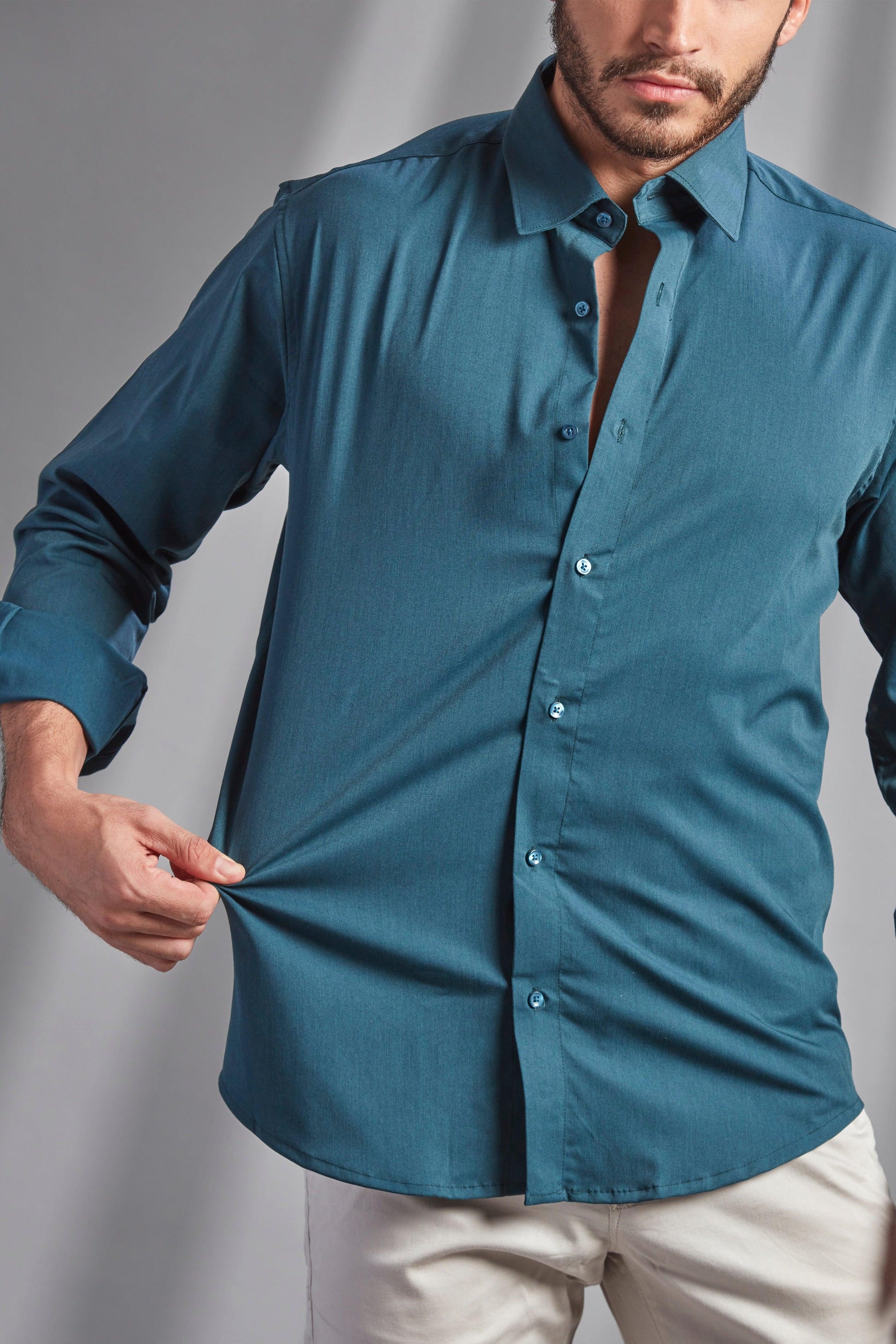 FlexEase Tencel Cotton Shirt in Tropical Teal