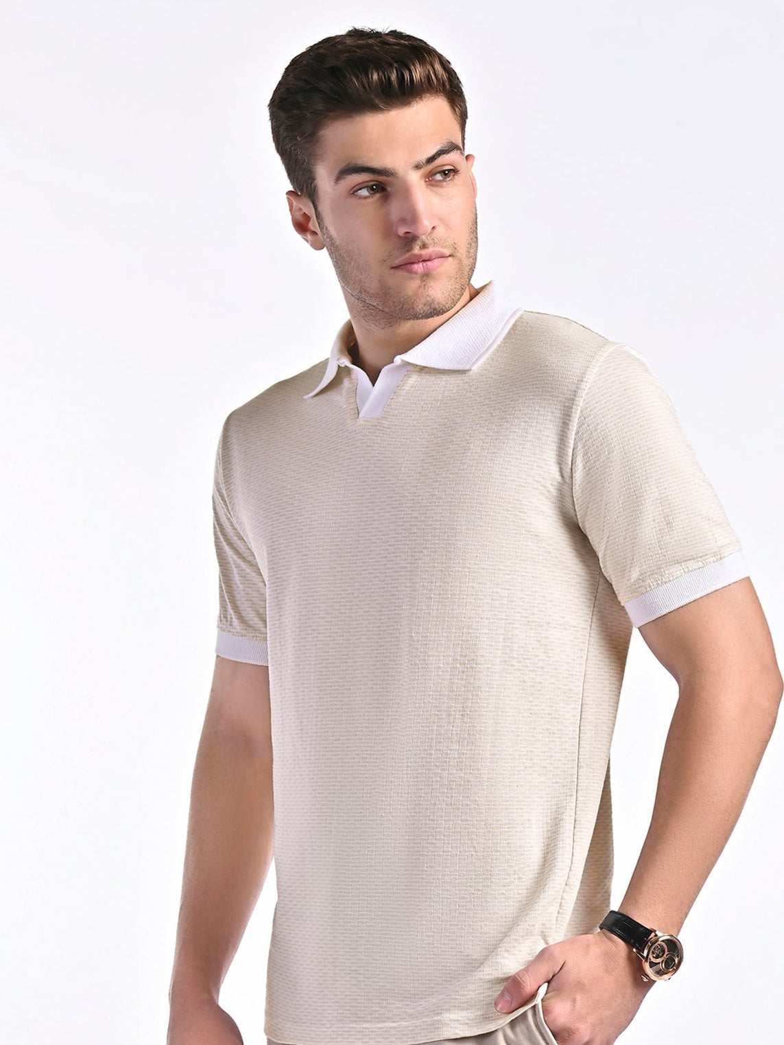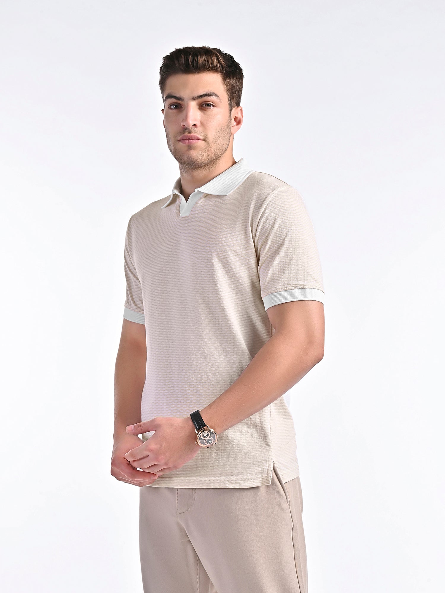 Step into effortless sophistication with the Mercerised Jacquard Polo in Biscotti Beige, a masterpiece of craftsmanship and design. Made from 100% yarn-dyed mercerised long-staple combed cotton, its intricate blend of blue and white yarns creates a distinctive texture. With its Johnny collar and striking contrast details, this polo redefines modern refinement.
