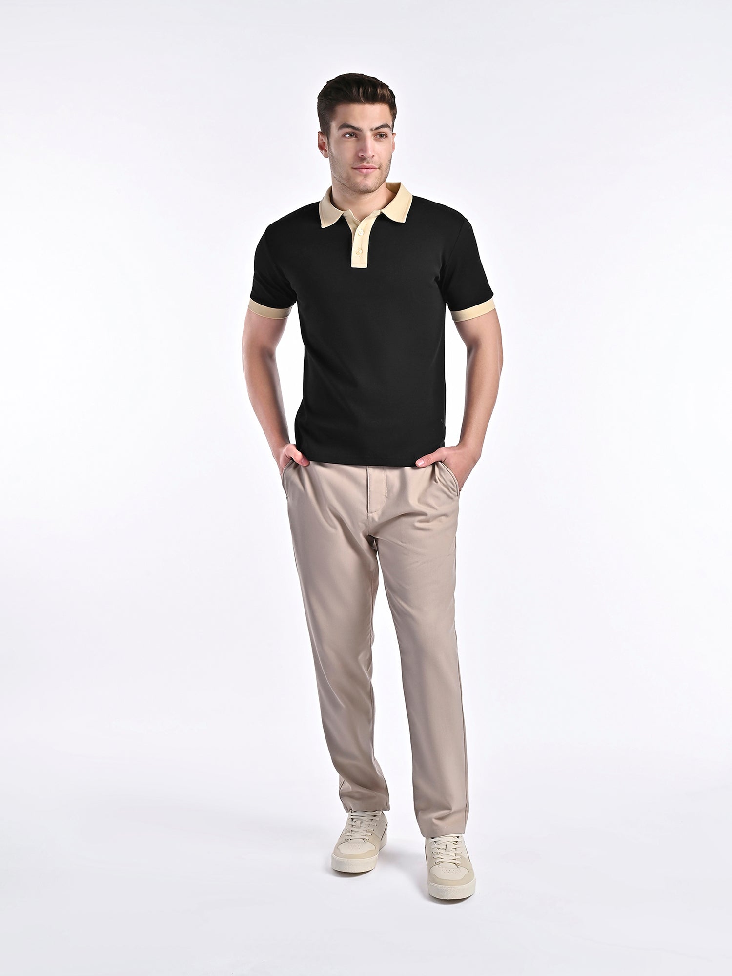 Smooth-Touch Contrast Polo in Gloss Black