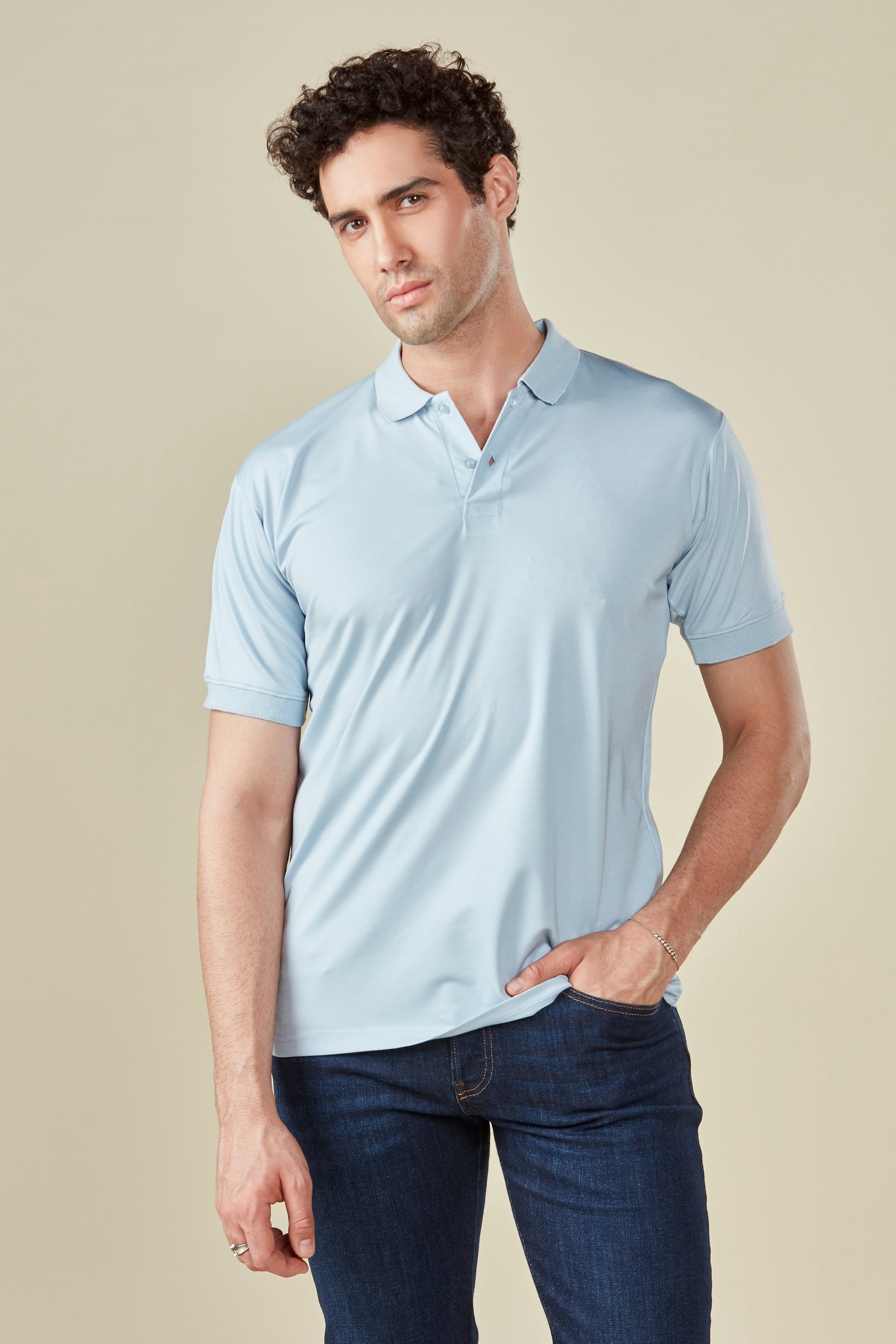 Tencel Stretch Polo in Baby Blue