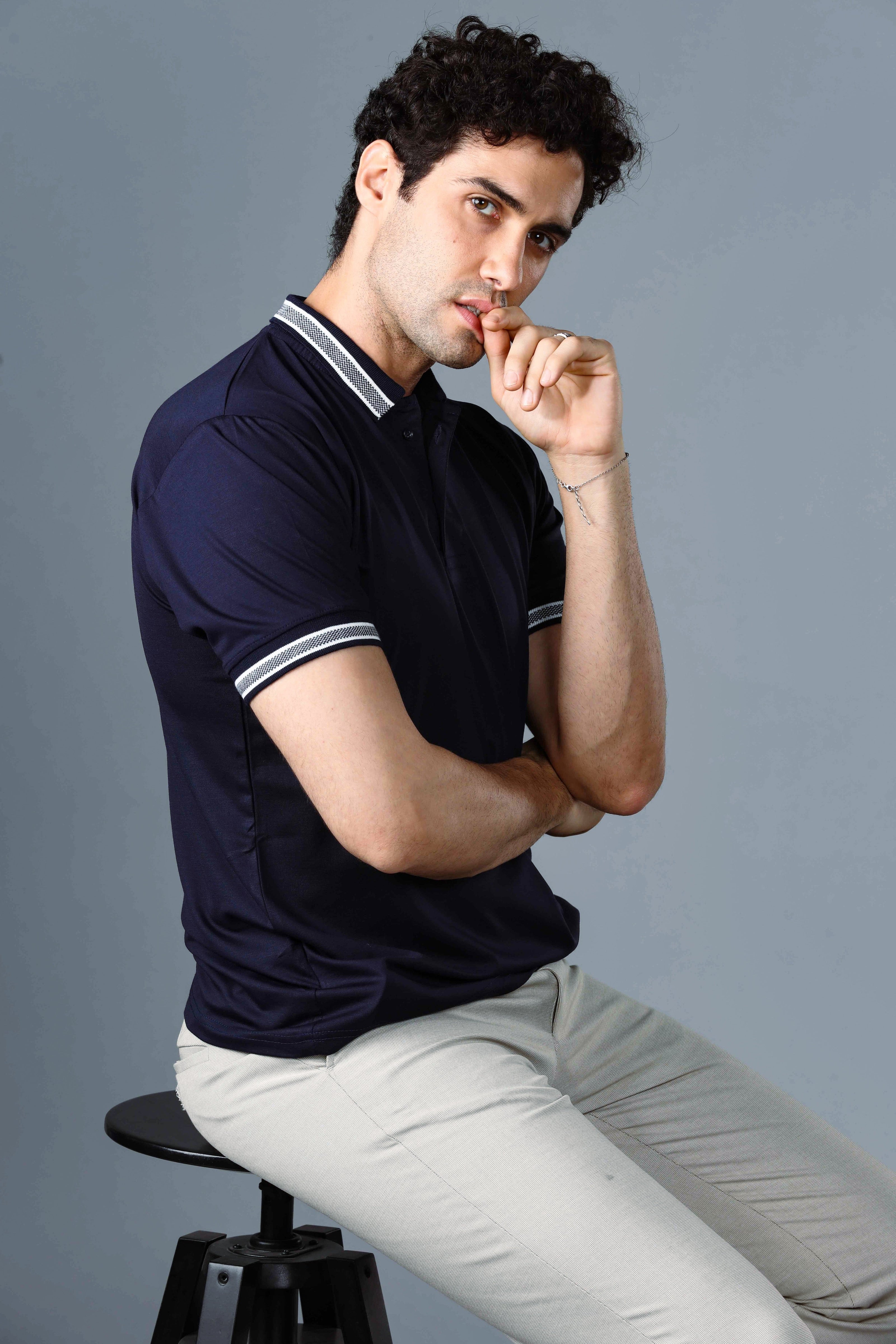 Tencel Stretch Polo in Deep Blue and Contrast trims