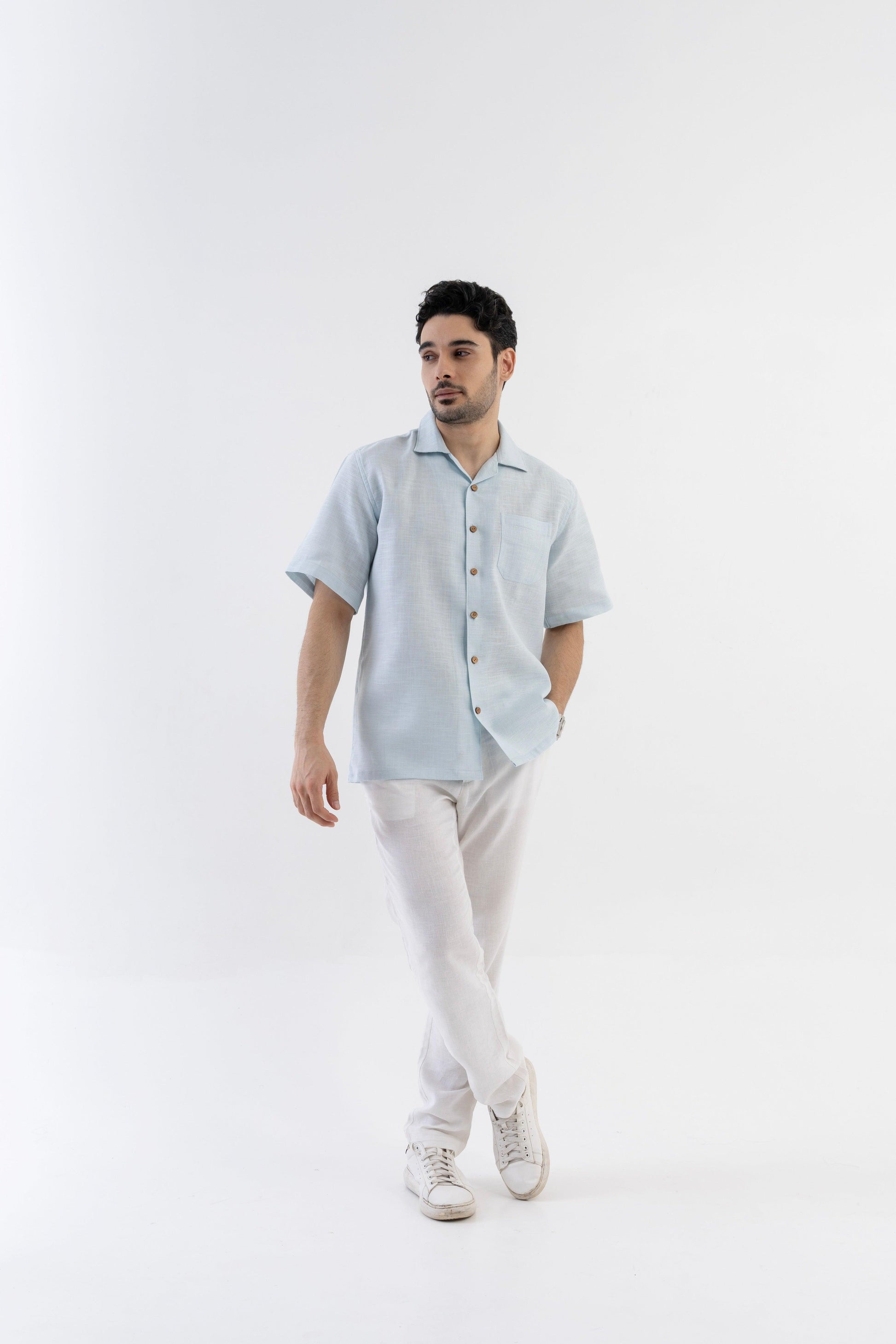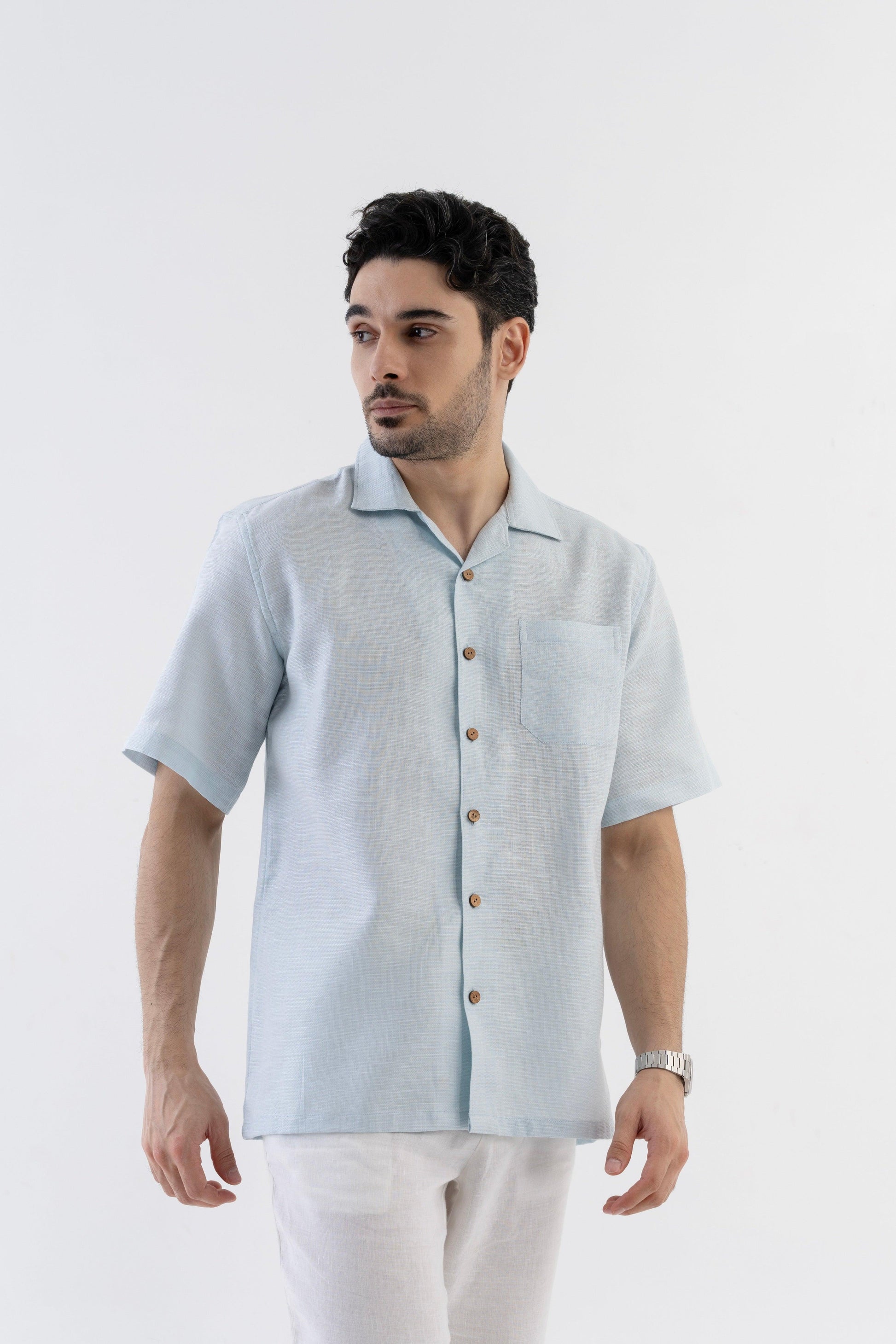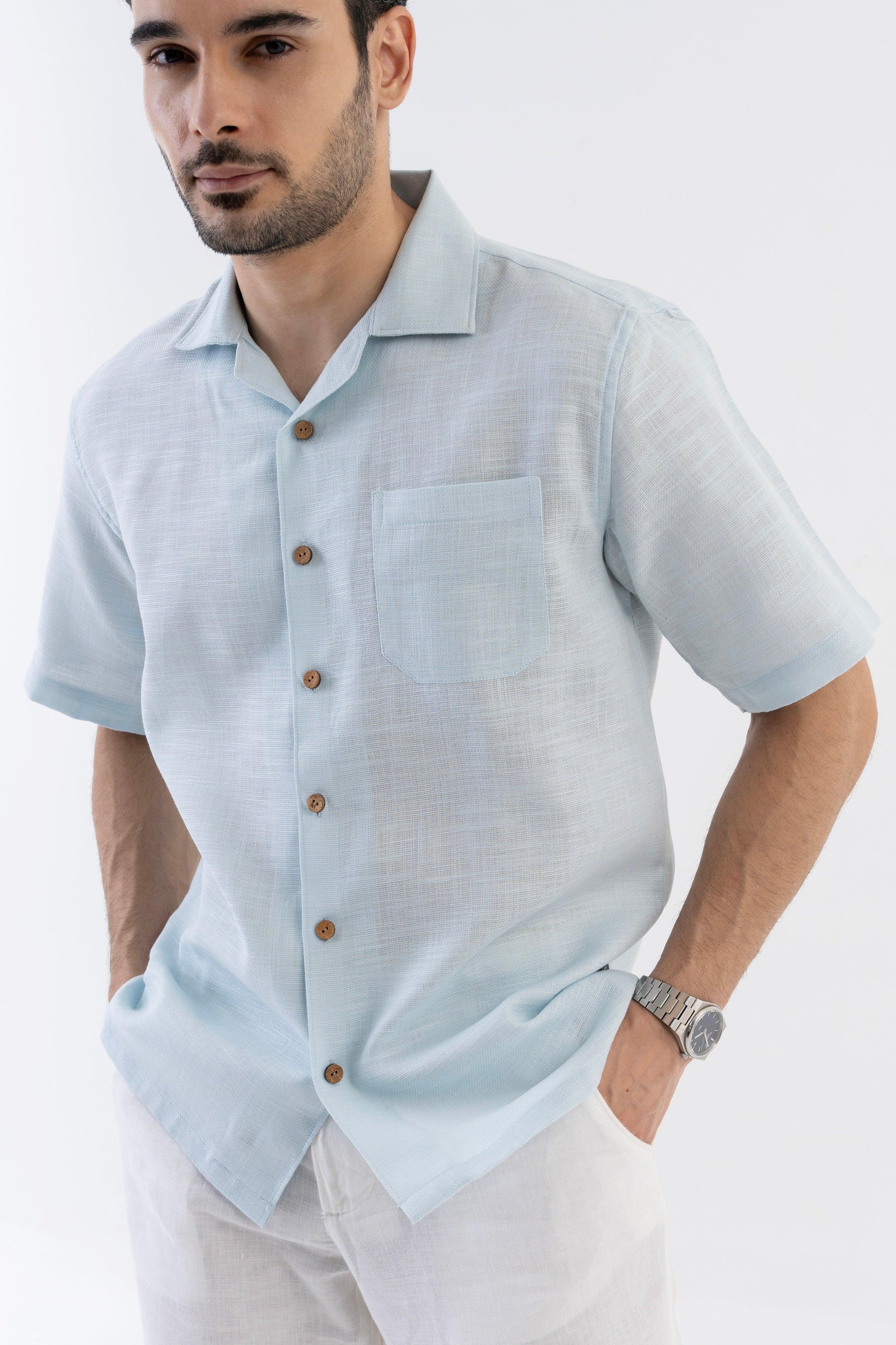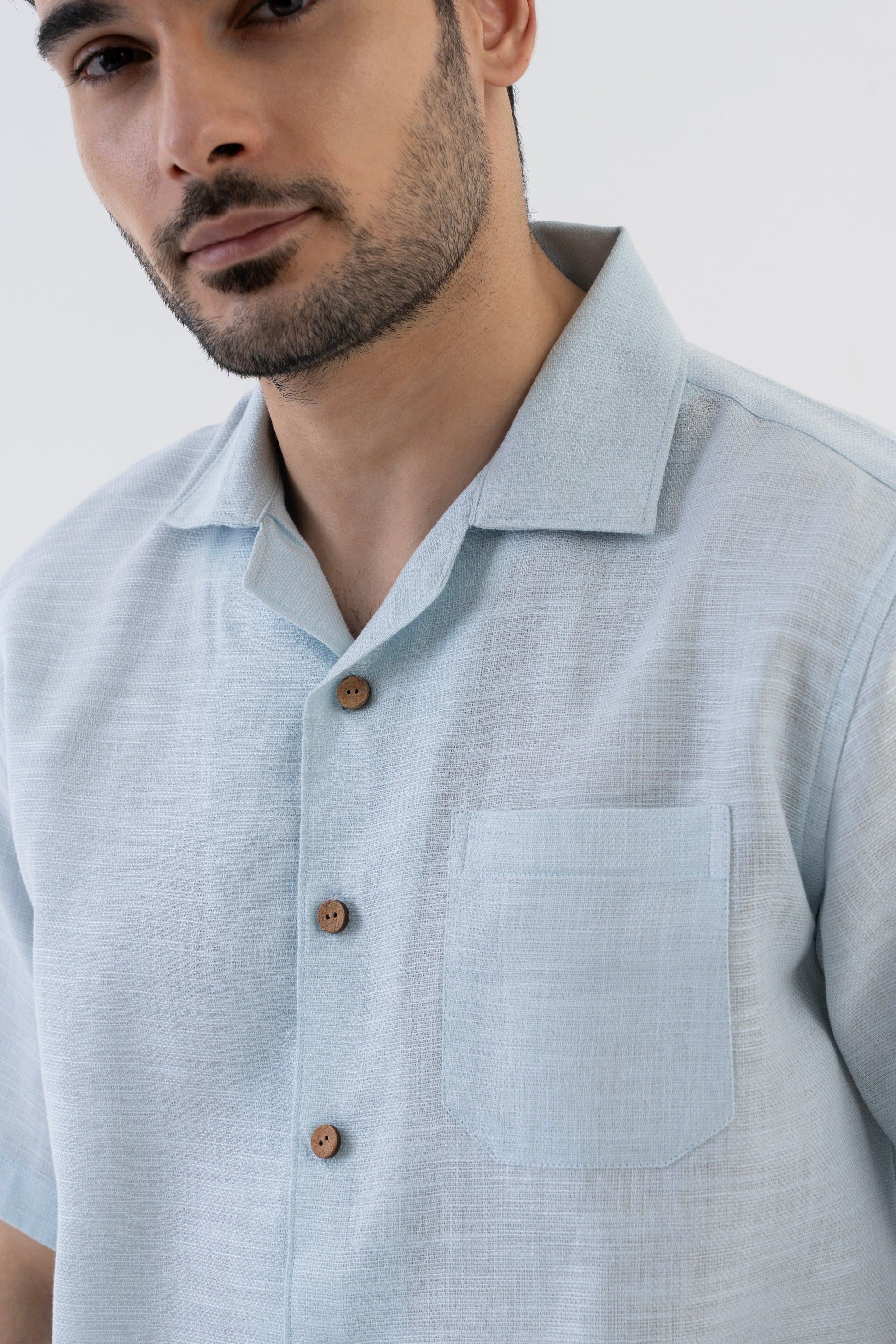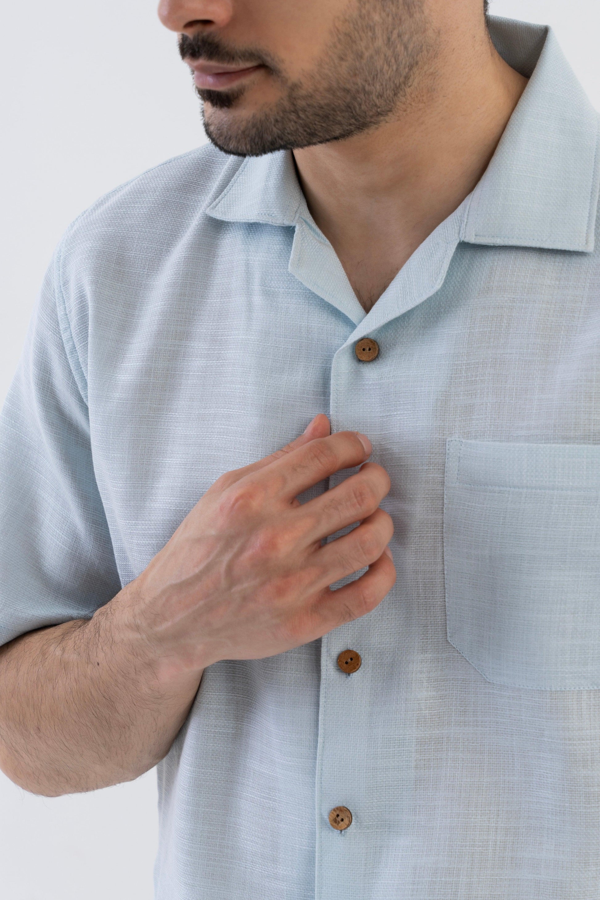 AirKnit Cuban Collar Shirt in Baby Blue