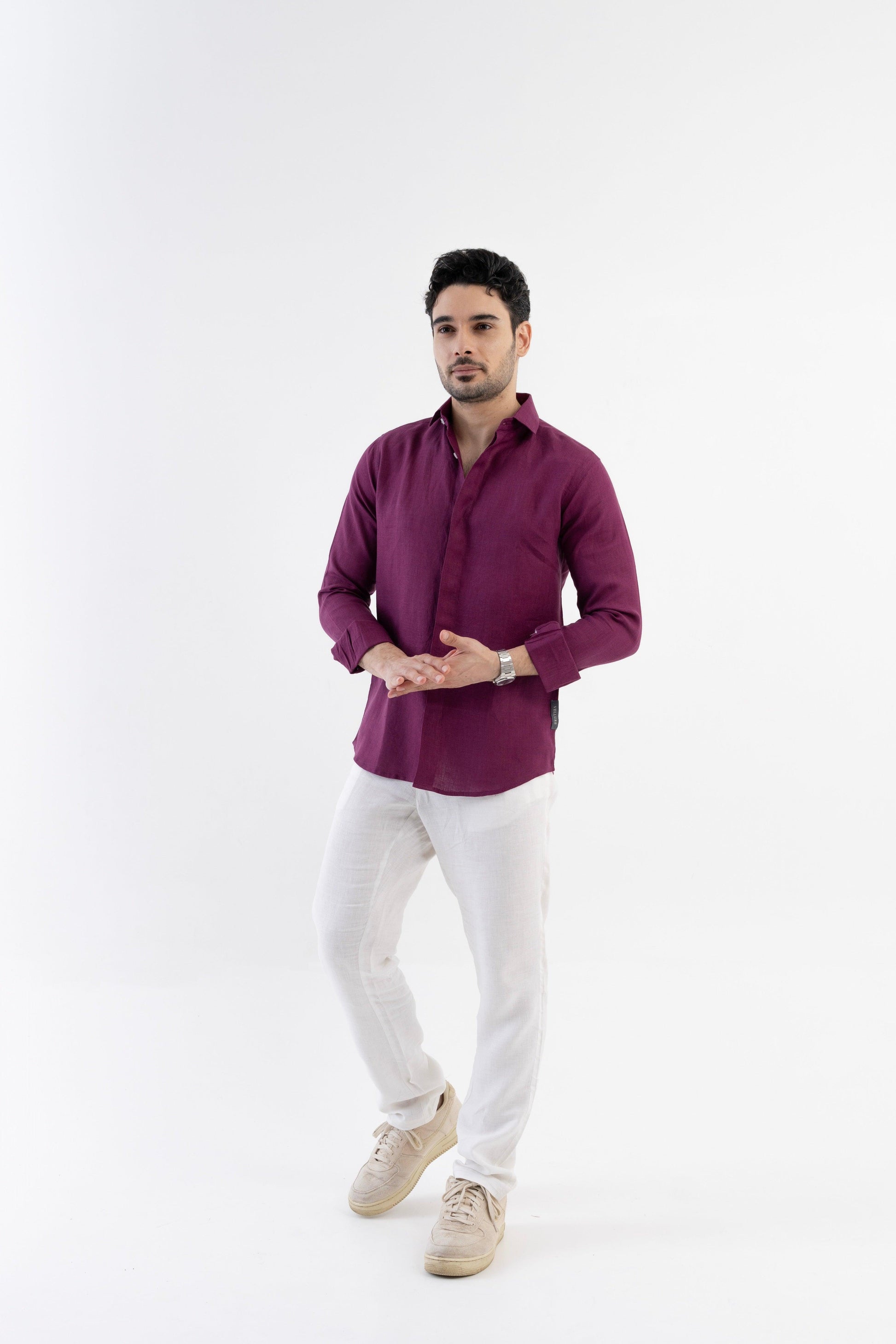100% Linen Soft Touch Relaxed Fit Shirt in Mulberry Mist
