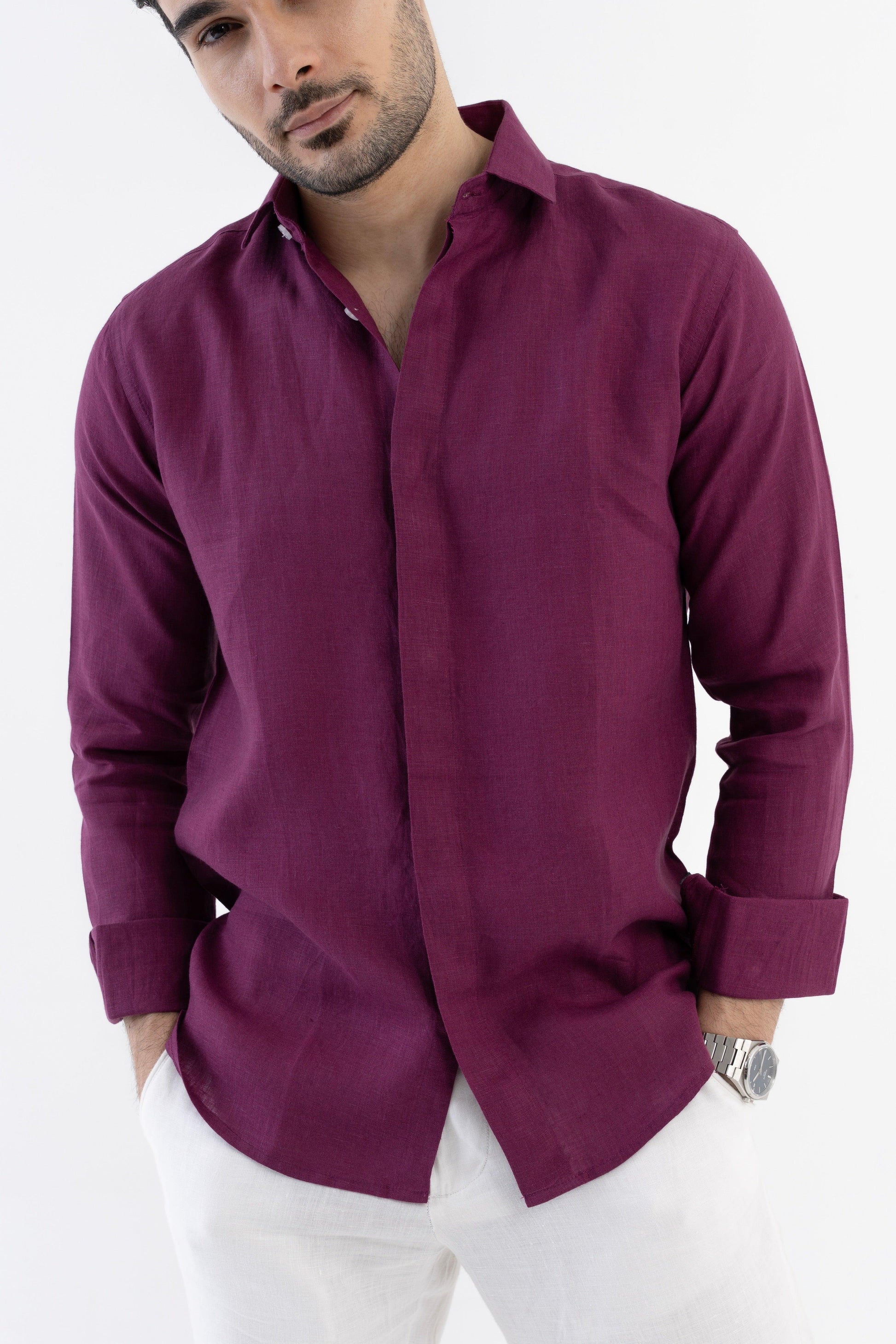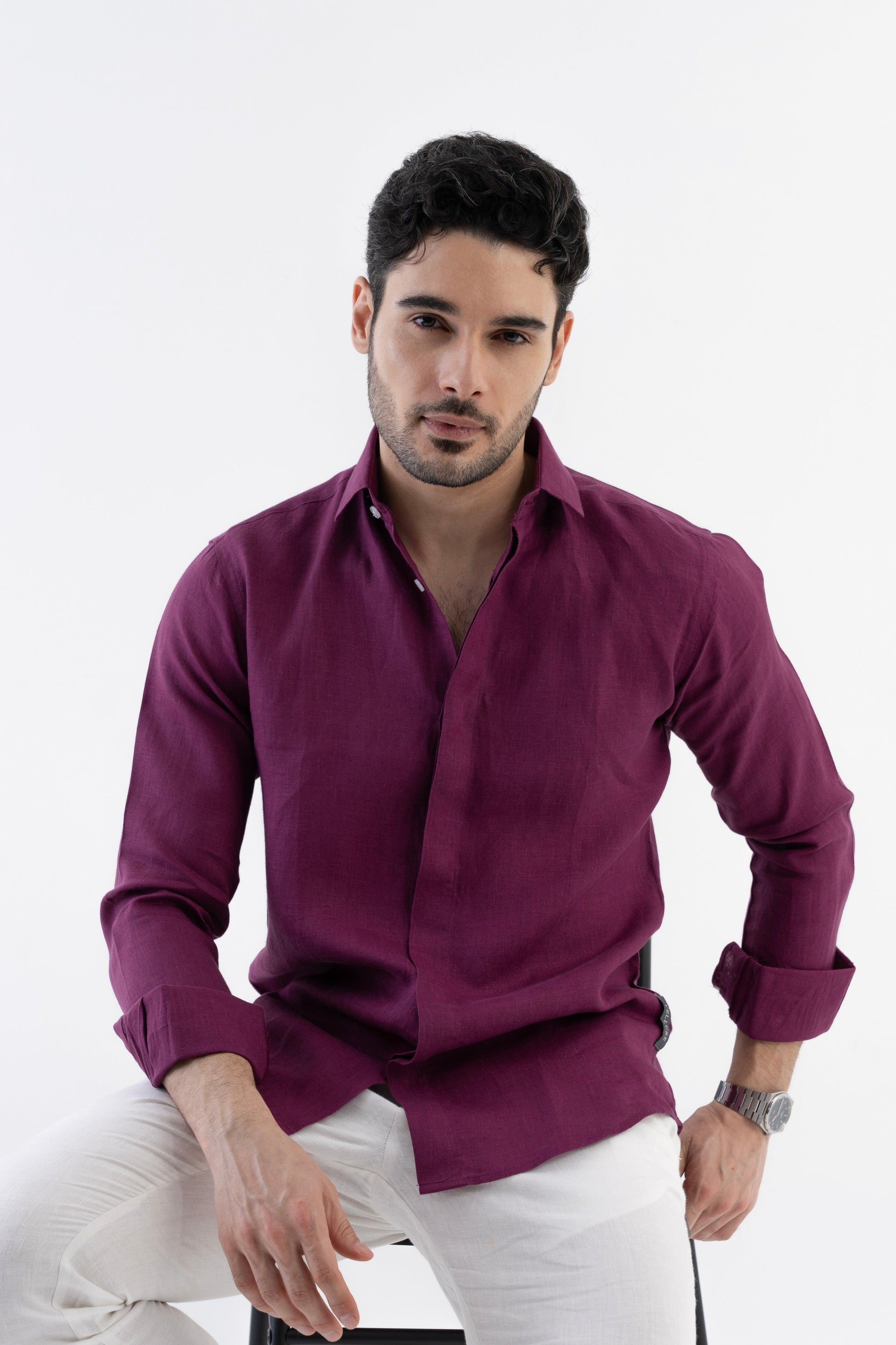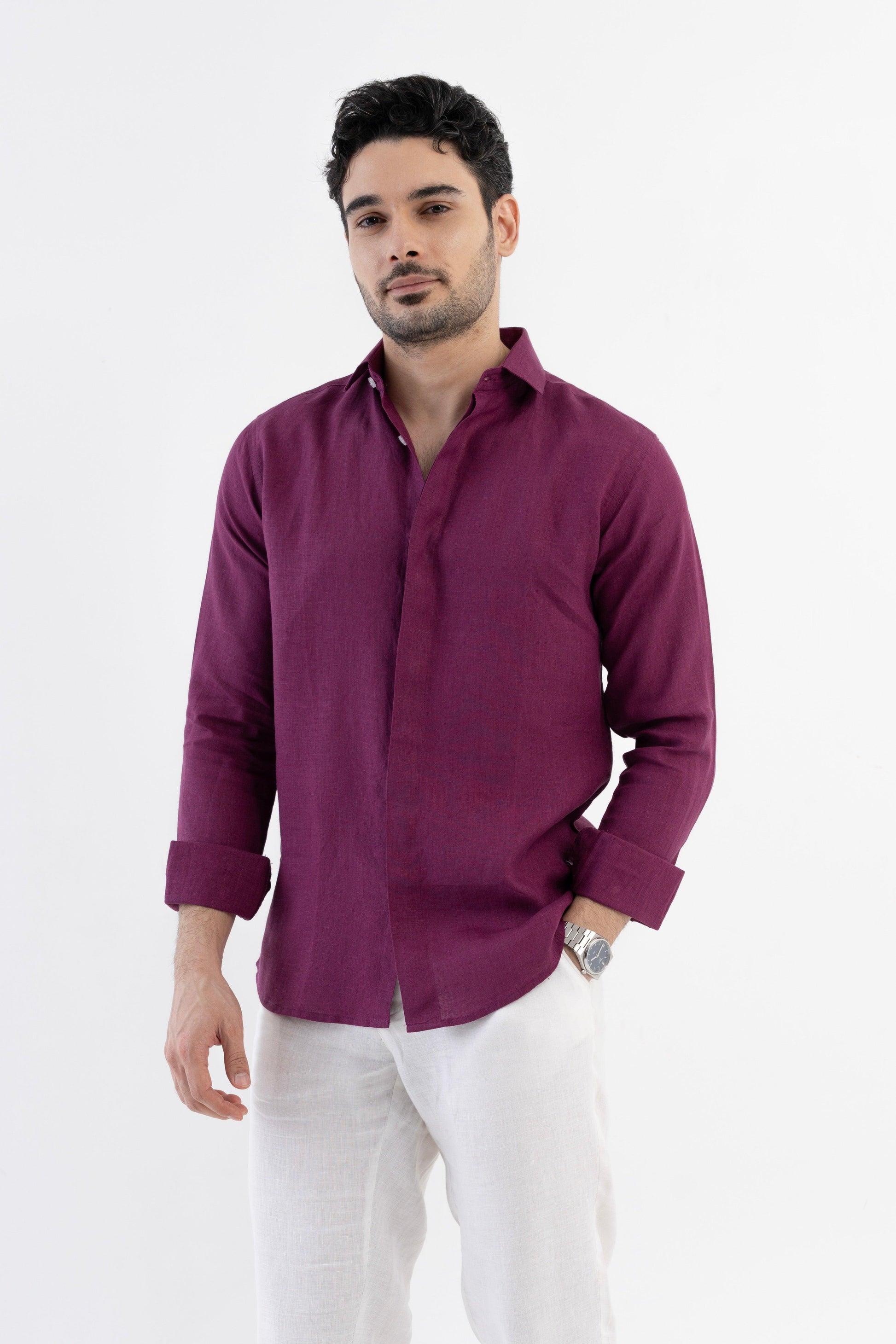 This relaxed-fit soft Mulberry Mist shirt is made from a lightweight, breathable linen fabric that has been enzyme washed for extra softness, ensuring comfort for any semi-formal occasion