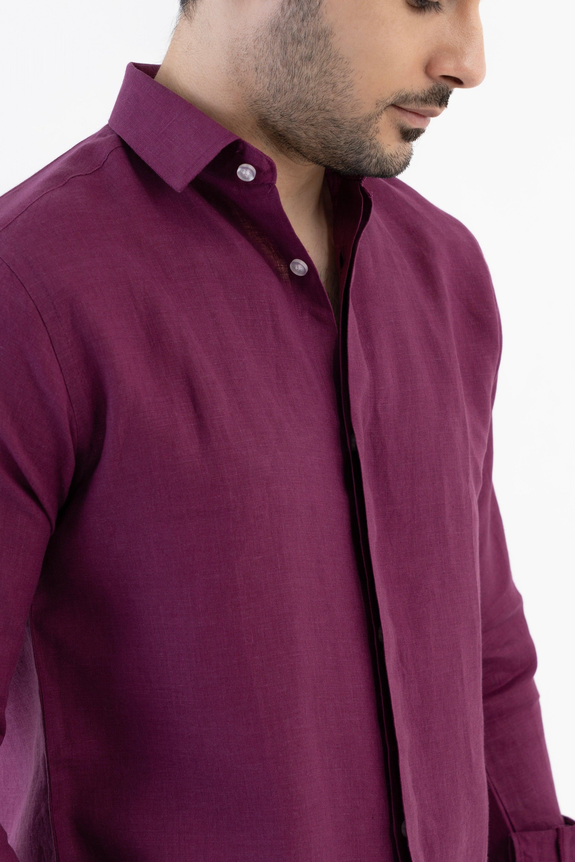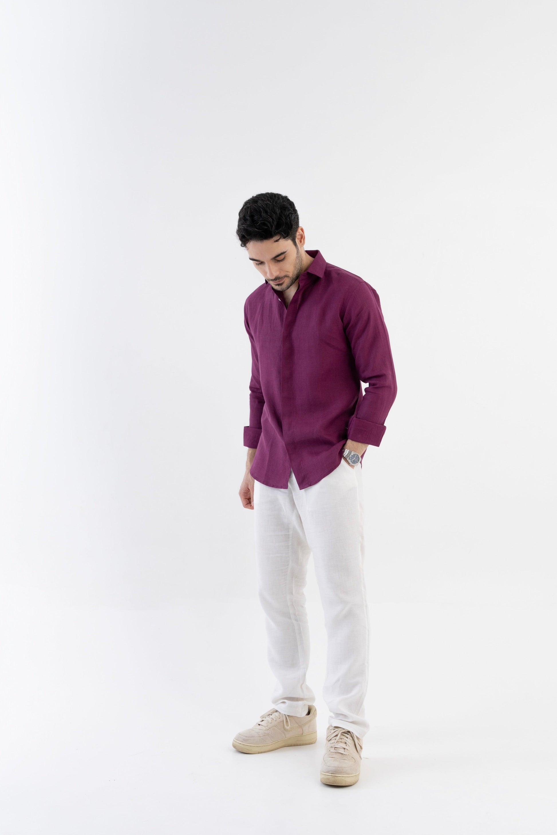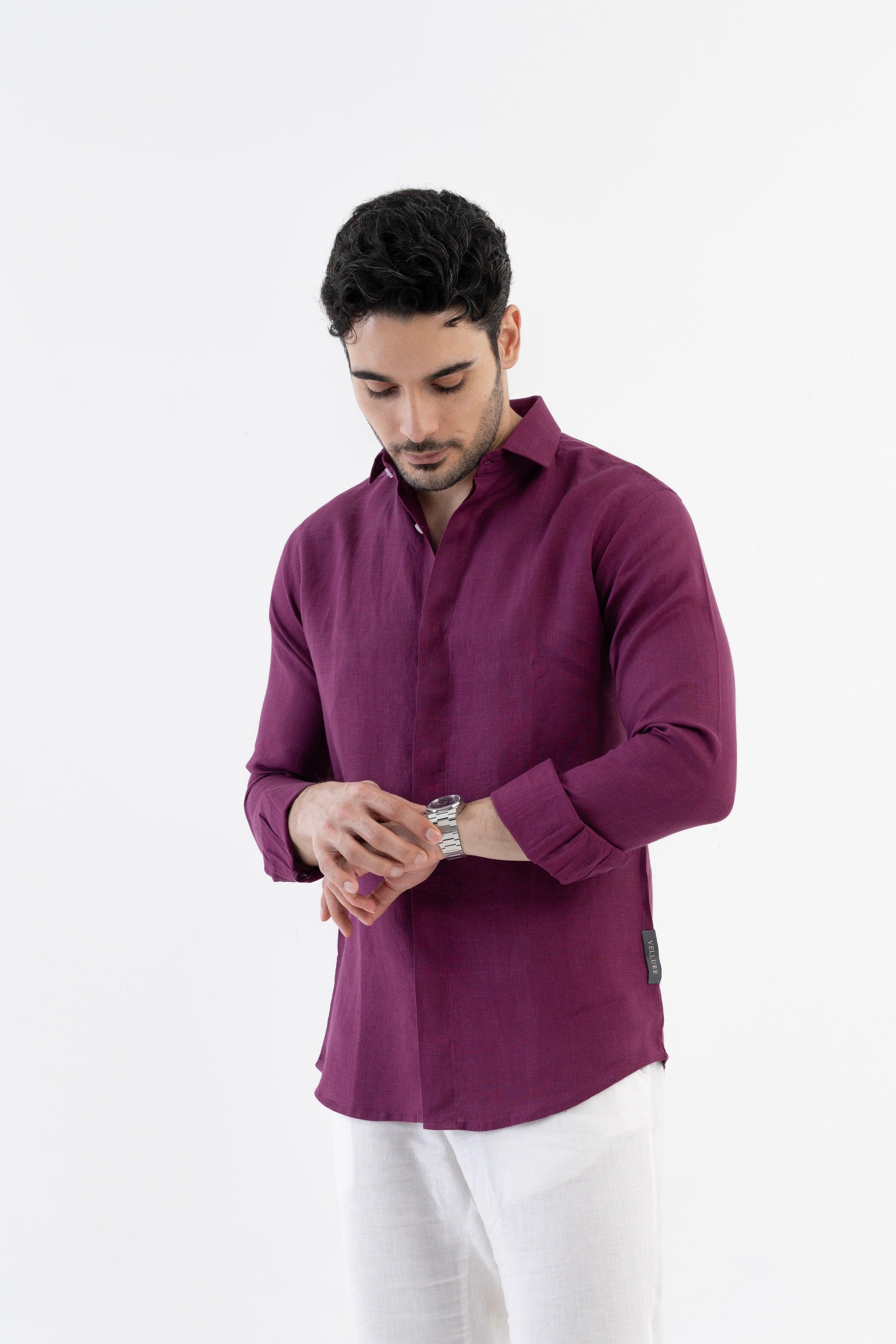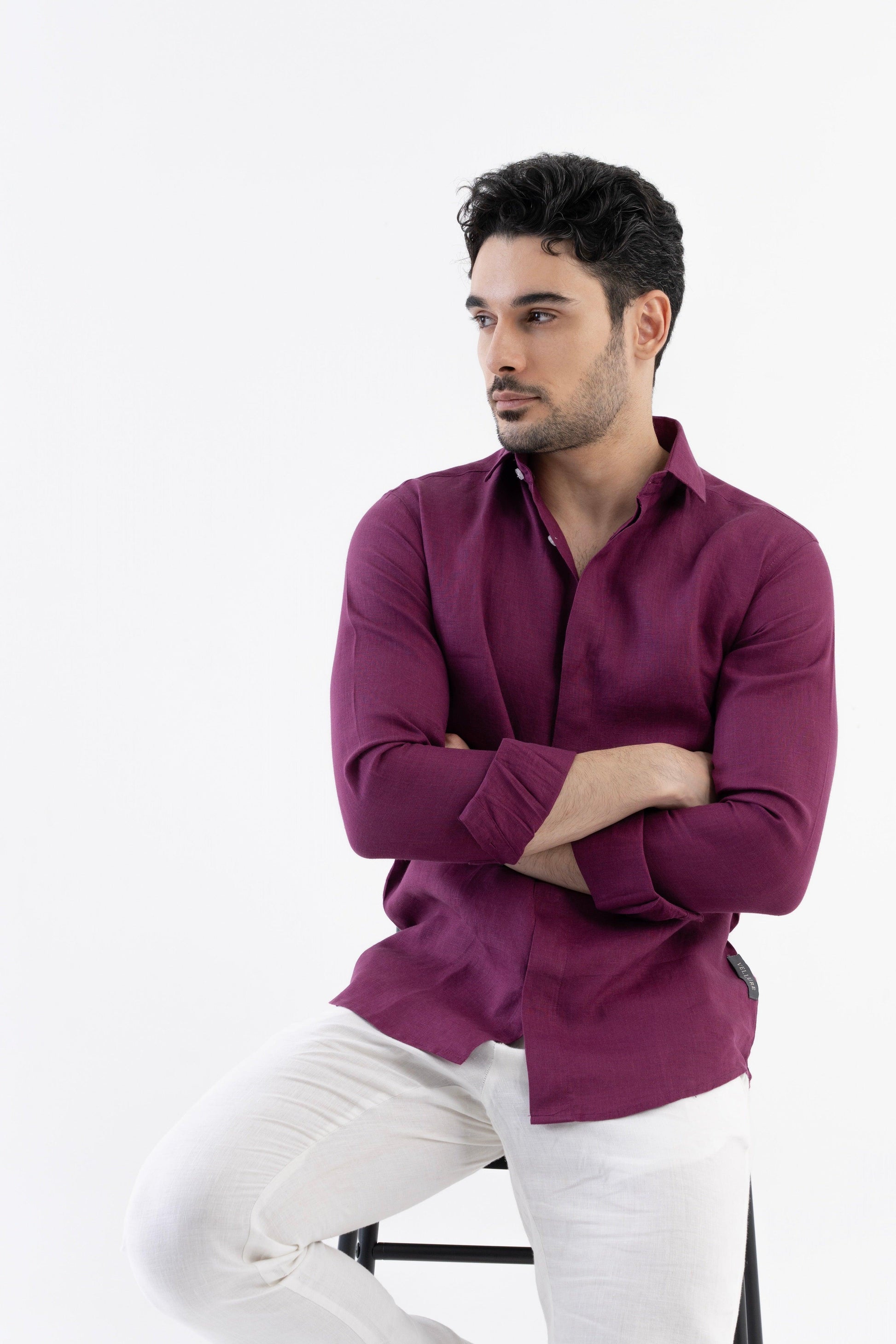 This relaxed-fit soft Mulberry Mist shirt is made from a lightweight, breathable linen fabric that has been enzyme washed for extra softness, ensuring comfort for any semi-formal occasion