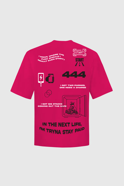 Pink oversized t-shirt featuring puff and screen print at front and back side, with our signature oversized and comfortable fit.