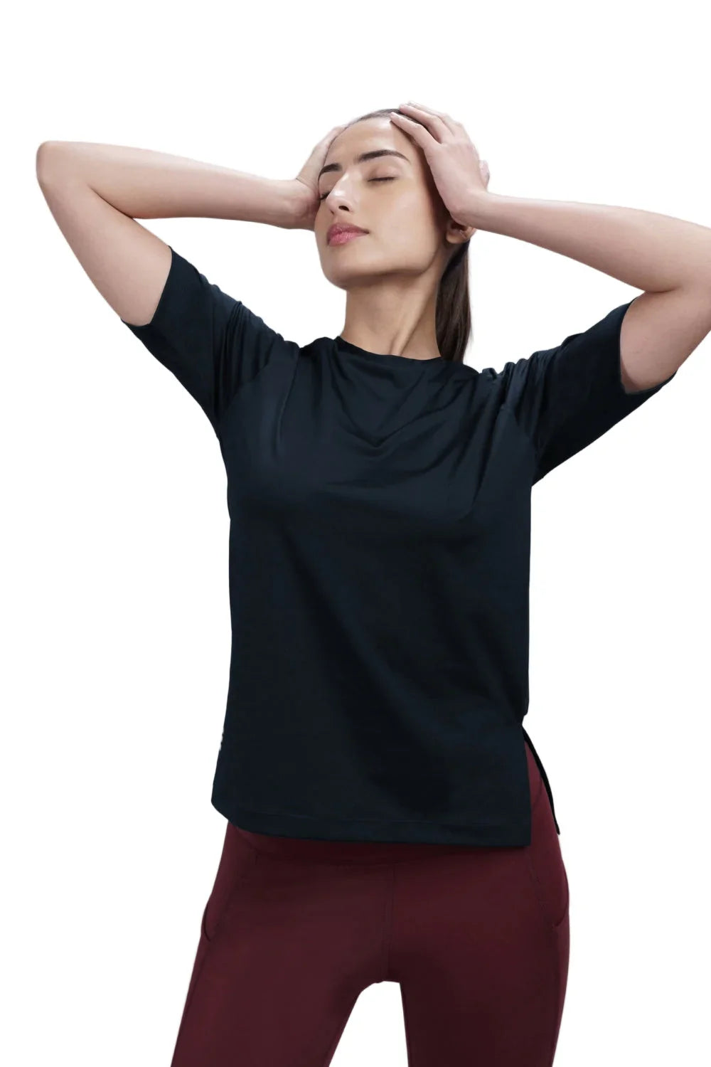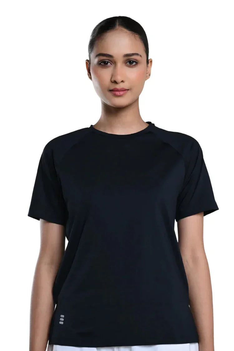 Colour: Midnight NavyMaterial: Biodegradable Polyester (170 GSM)Occasion: Workout, Training, Yoga, AthleisurePattern: SolidNeckline: Round NeckFit: Regular FitSleeve Type: Short SleevesCare Instructions: Machine wash cold; do not bleach; tumble dry lowPack Contains: 1 T-shirtCountry Of Origin: India
