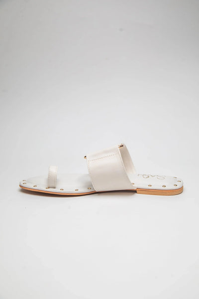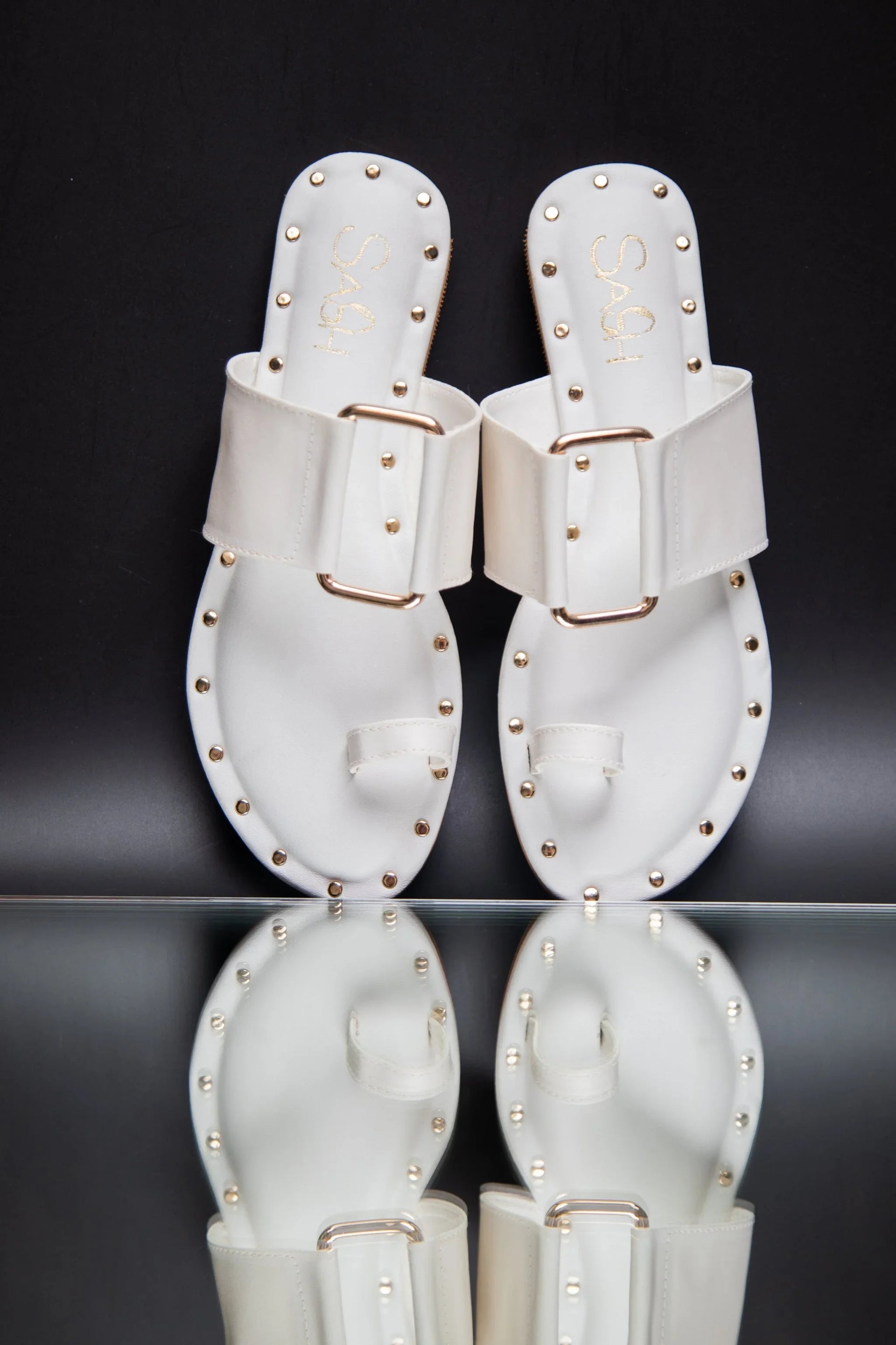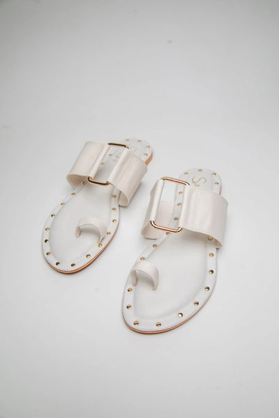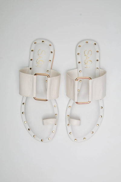 White Flat Sandals with Gold Studs – Elegant & Versatile Footwear for WomenStep into sophistication with these white flat sandals featuring striking gold studs. Designed for effortless style, these sandals offer the perfect combination of modern chic and timeless elegance. The soft white hue exudes purity, while the gold stud detailing adds a touch of luxury. Whether you're heading to a casual outing or a summer event, these white slip-on sandals ensure comfort and style all day long.
