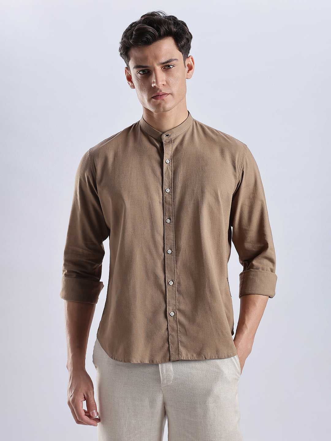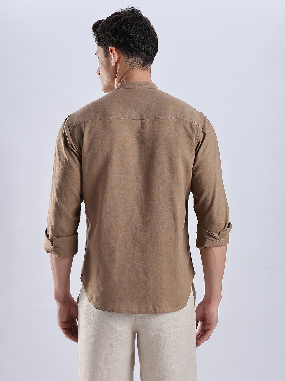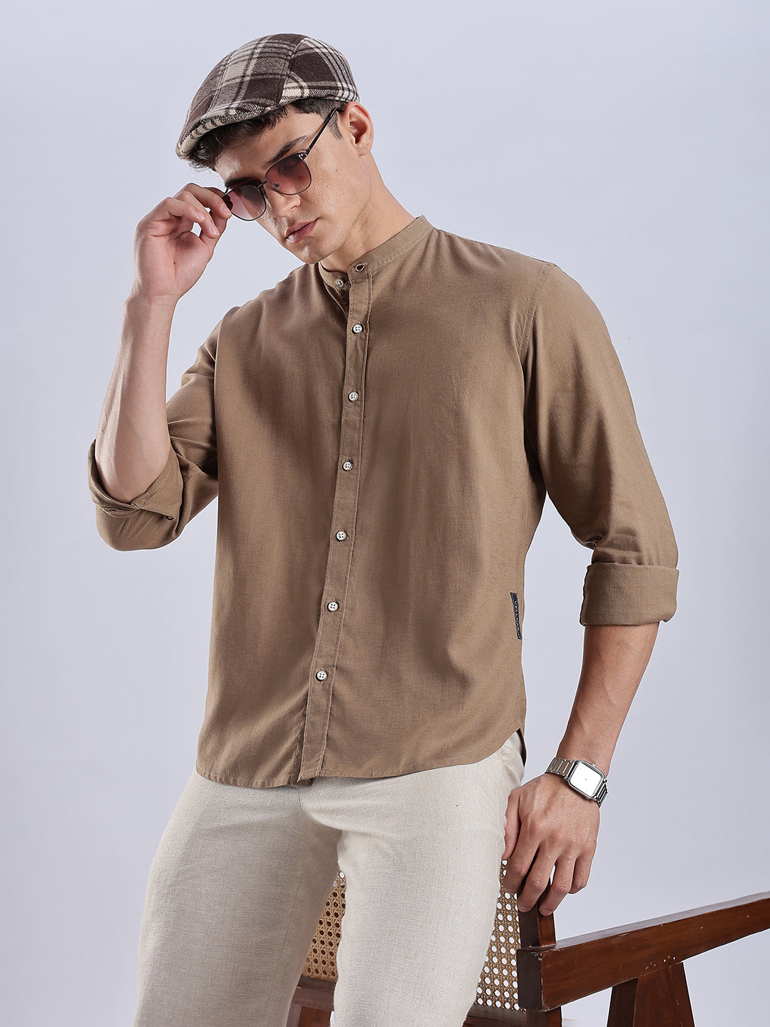 Kyoto Linen Mandarin Shirt in Mocha Dust