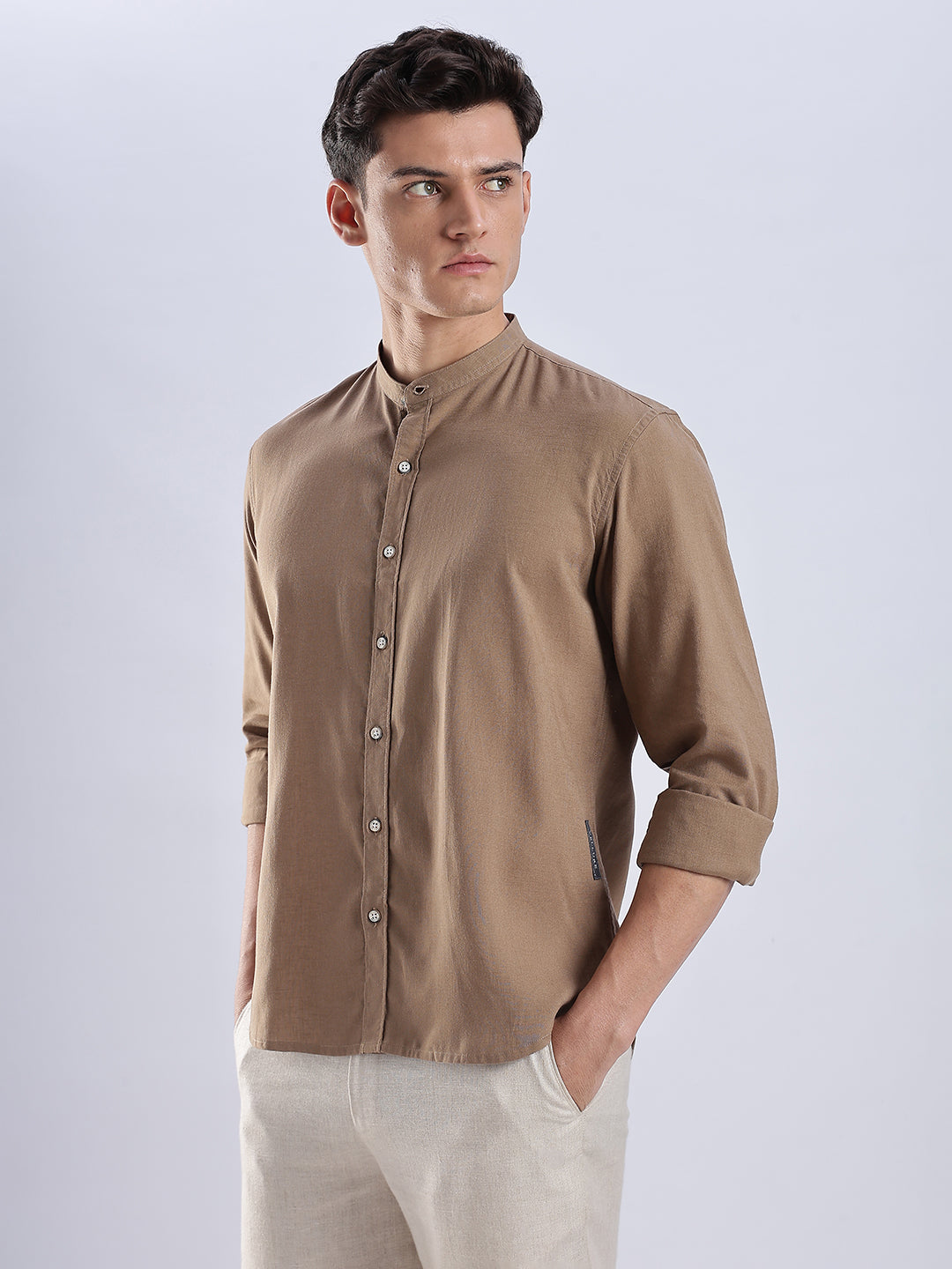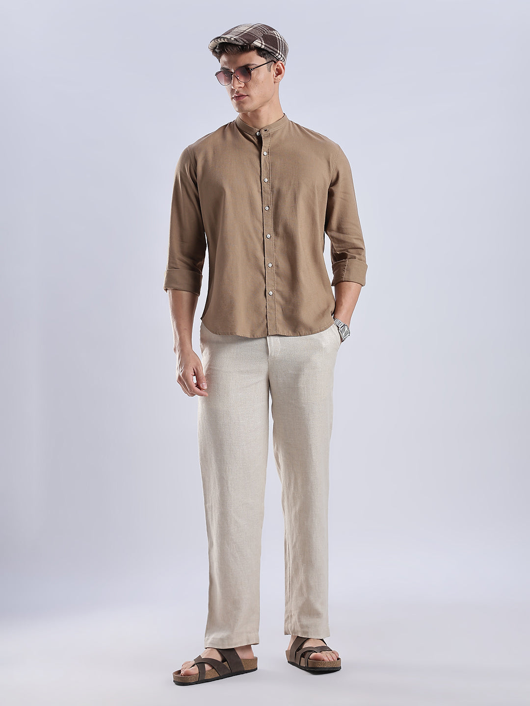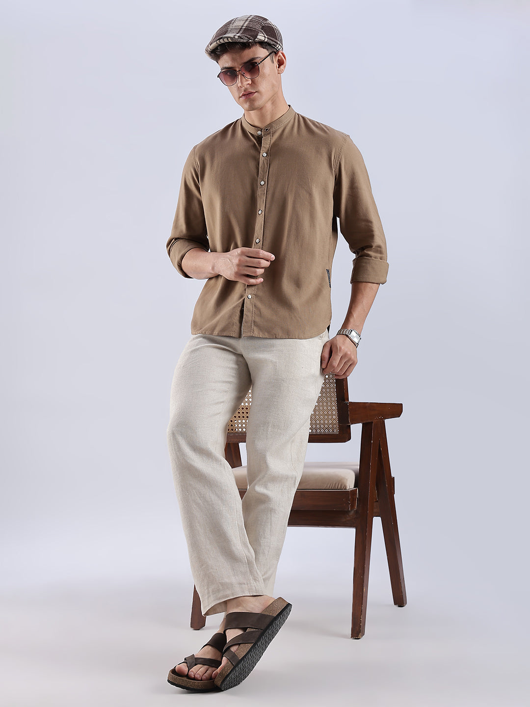 Kyoto Linen Mandarin Shirt in Mocha Dust