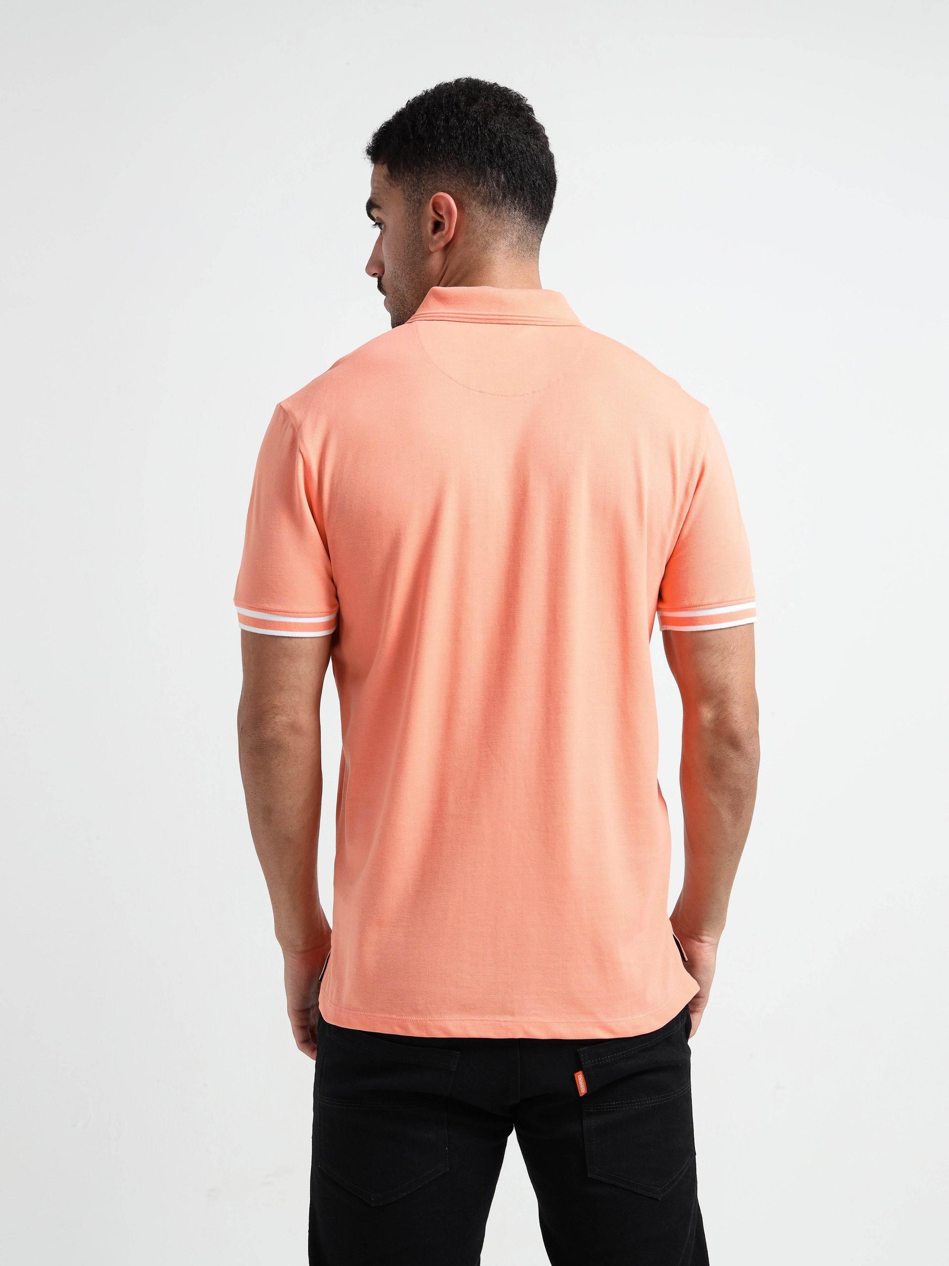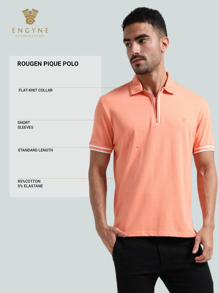 Colour: Light OrangeMaterial: 95% Cotton, 5% Elastane (Rougen Piqué)Occasion: Casual, Smart Casual, Daily WearPattern: Solid with Contrast Tipping & Textured CollarNeckline: Polo Neck with Zipper PlacketFit: Regular FitSleeve Type: Short SleevesCare Instructions: Machine wash cold, do not bleach, tumble dry low, iron on low, avoid ironing on printPack Contains: 1 Polo T-ShirtCountry Of Origin: India