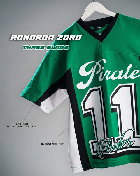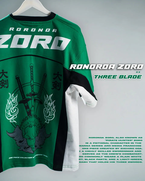 Celebrate the legendary swordsman with the Zoro Three Blades Oversized T-Shirt. Crafted from premium 260 GSM terry cotton with double bio wash, it features a bold puff-print front and durable screen printing. The unisex oversized fit ensures comfort and style, perfect for casual wear, streetwear, or anime events.